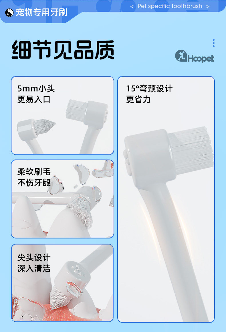 【品名】:hoopet新款宠物牙刷(平头/尖头)