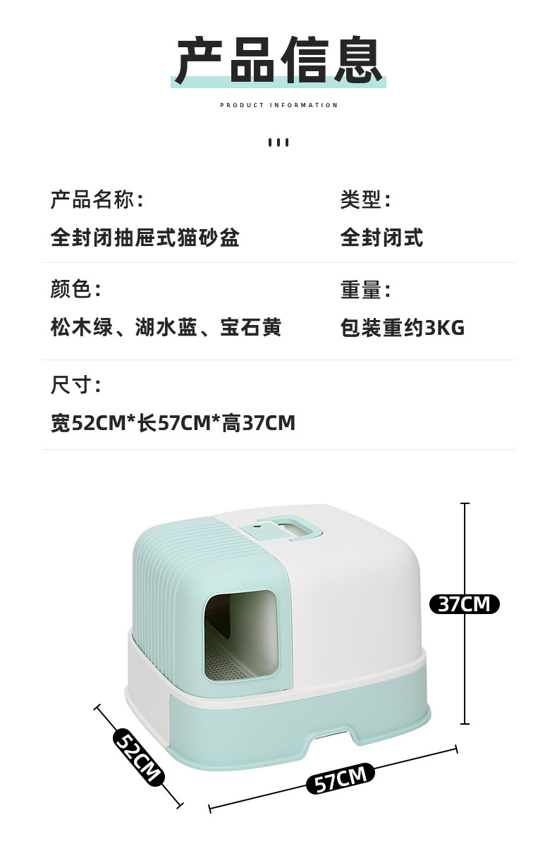 【品名】:HOOPET长通道带抽屉猫砂盆(蓝/黄/绿)