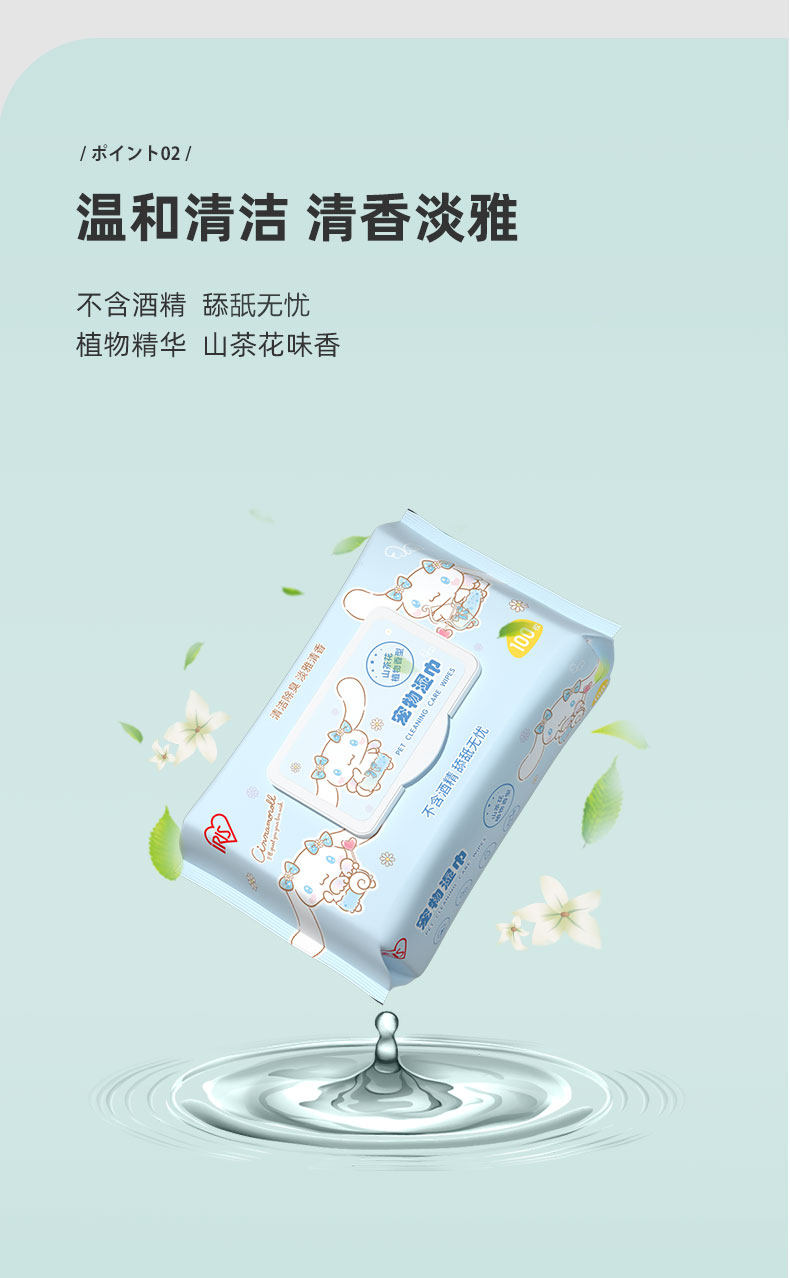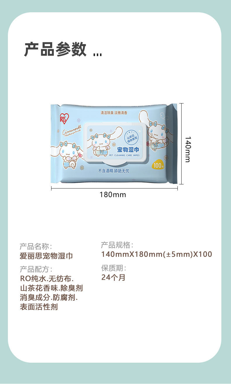 【品名】:爱丽思宠物湿巾山茶花植物香型