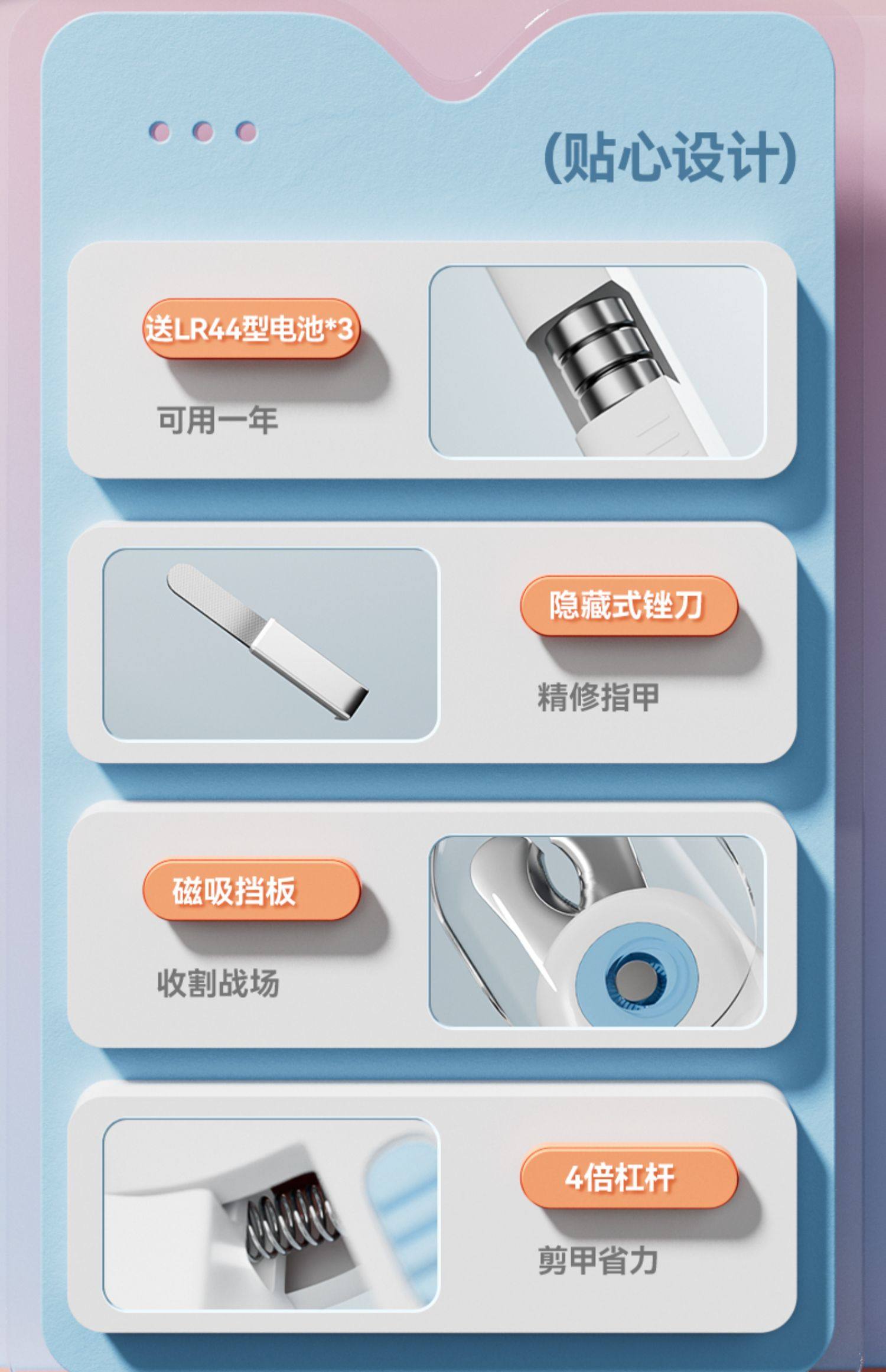 LED发光指甲剪自带配套电池哦~不适用于深色指甲,深色指甲照不出血线~