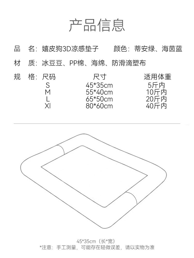 | Especificaciones | S (peso recomendado dentro de 5 kg),M (peso recomendado dentro de los 10 kg),L (peso recomendado dentro de los 20 kg),XL (peso recomendado dentro de 40 kg) |