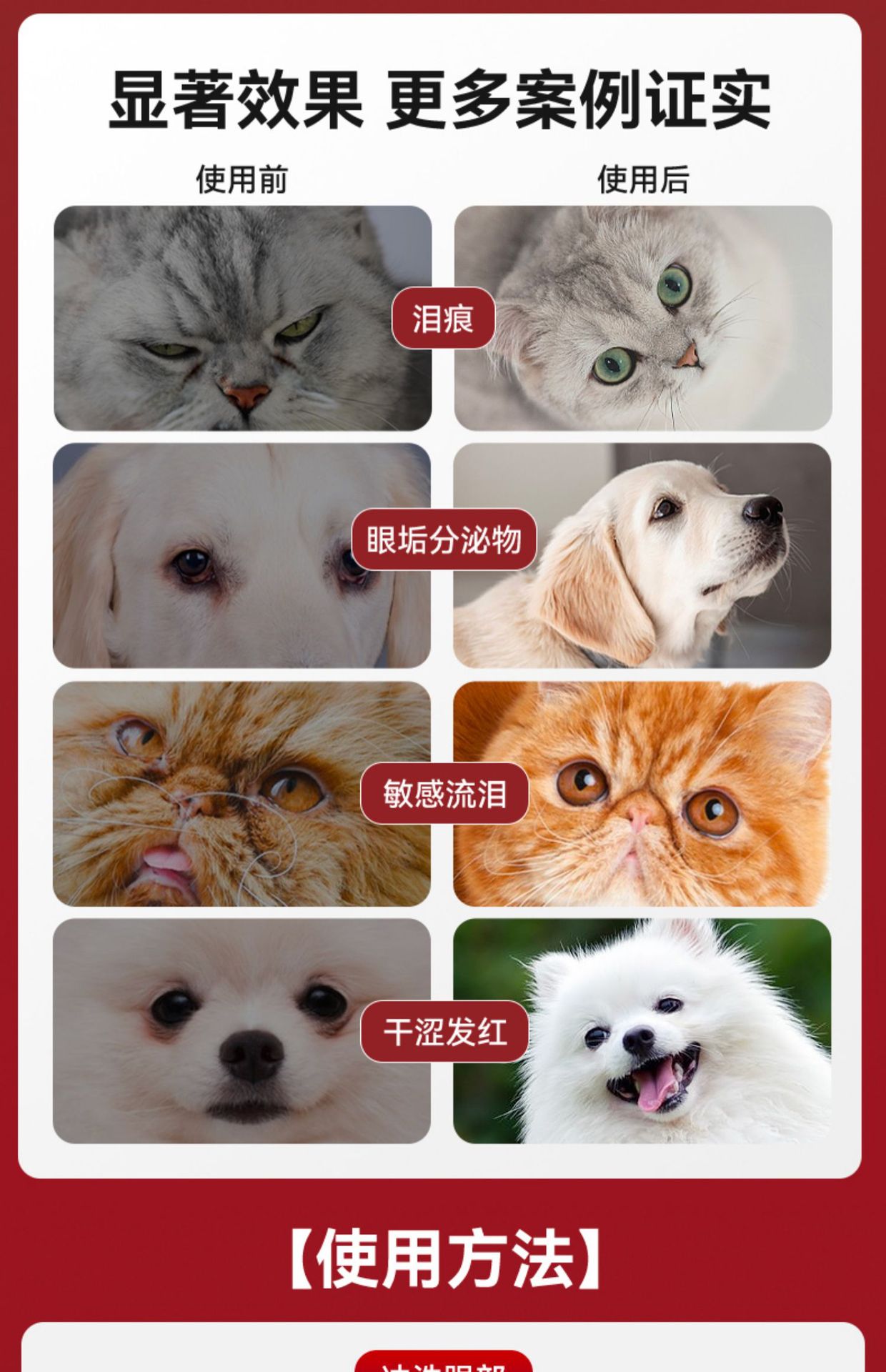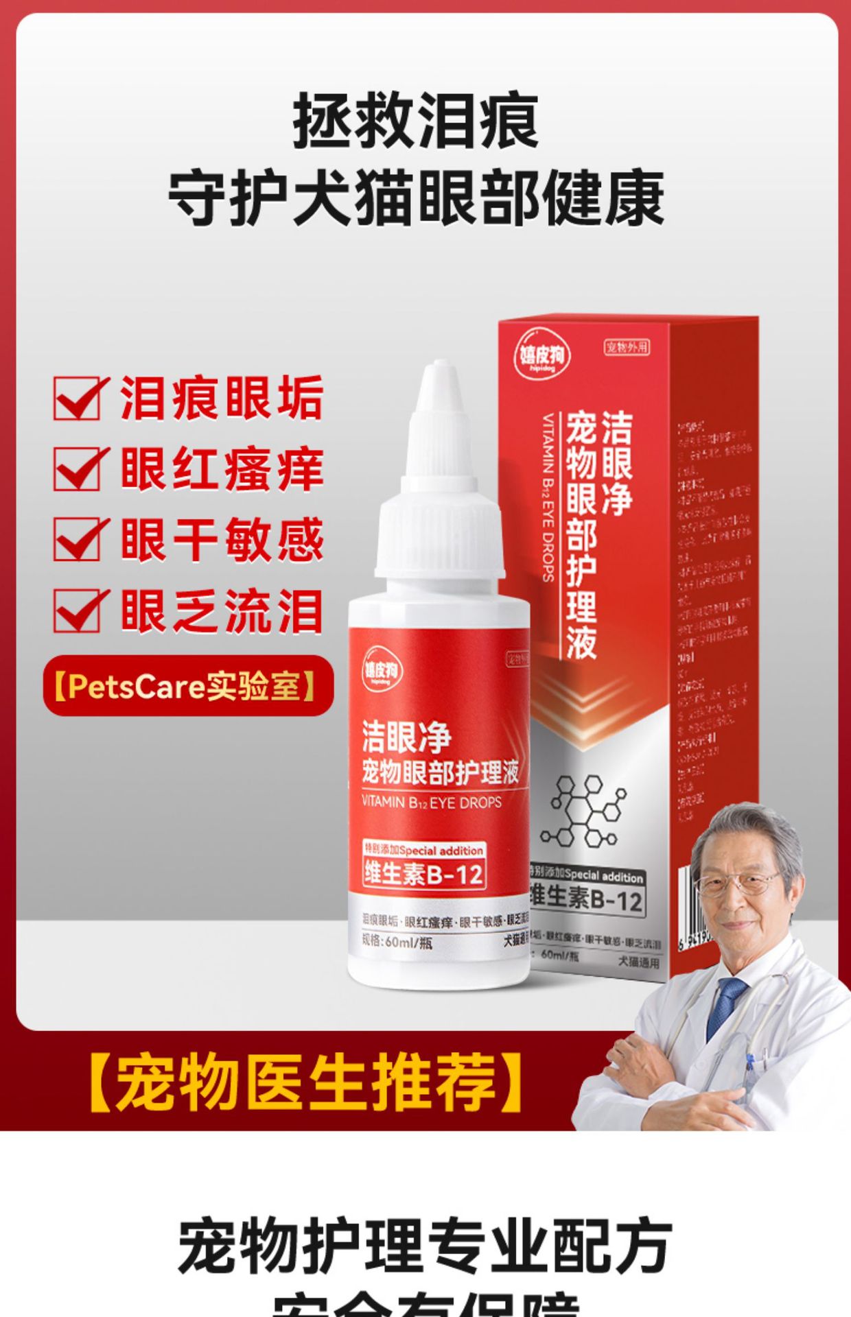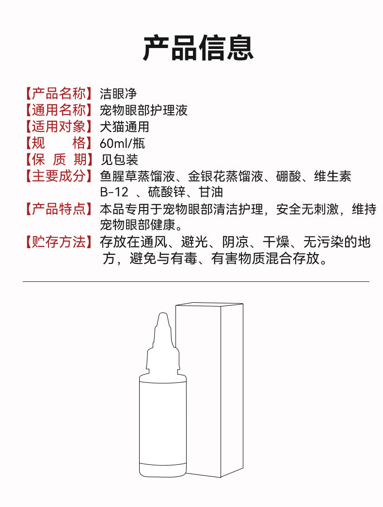| Especificaciones | Gotas para los ojos (especialmente vitamina B- 12 añadida),[Gotas para los ojos] 60ml para perros y gatos,[Gotas para los oídos] 60ml (agregue tres ginseng EXT) |