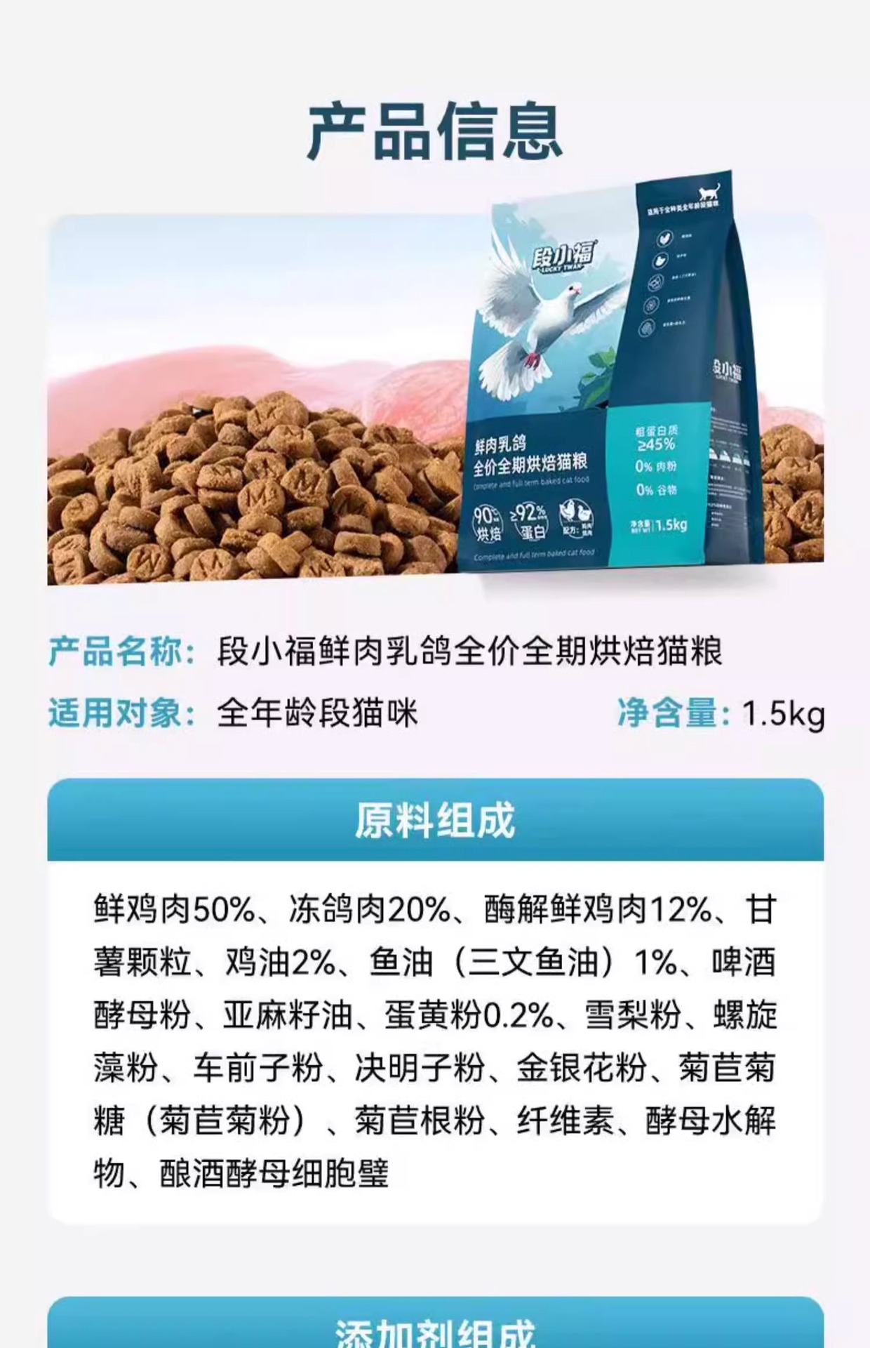 | Sabor | Comida para gatos horneada completa para palomas de carne fresca,Pigeon de carne fresca doble pelea [3 catties] |