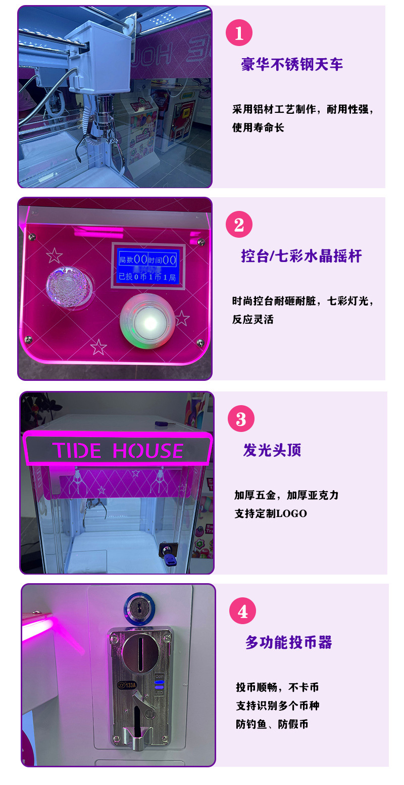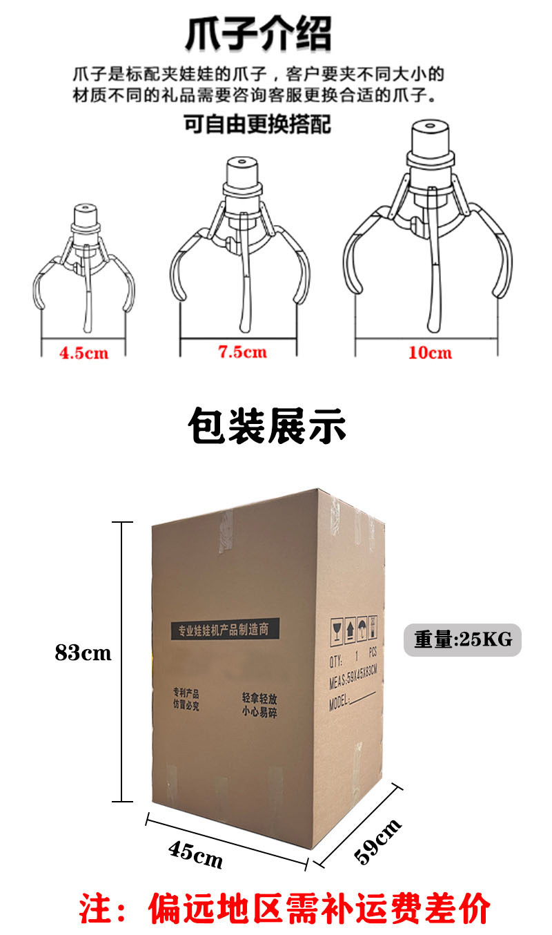 | Especificaciones | Máquina de garras boutique para uso comercial/rosa,Máquina de muñecas boutique para uso comercial/azul,Máquina de muñecas boutique para uso comercial/amarillo |
