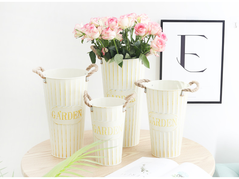 Estilo nórdico, hogar, cubo de flores, floristería, cubo de flores, decoración, cubo de metal, arreglo floral, cultivo de flores en aguas profundas, cubo de hierro, oro grande, pequeño