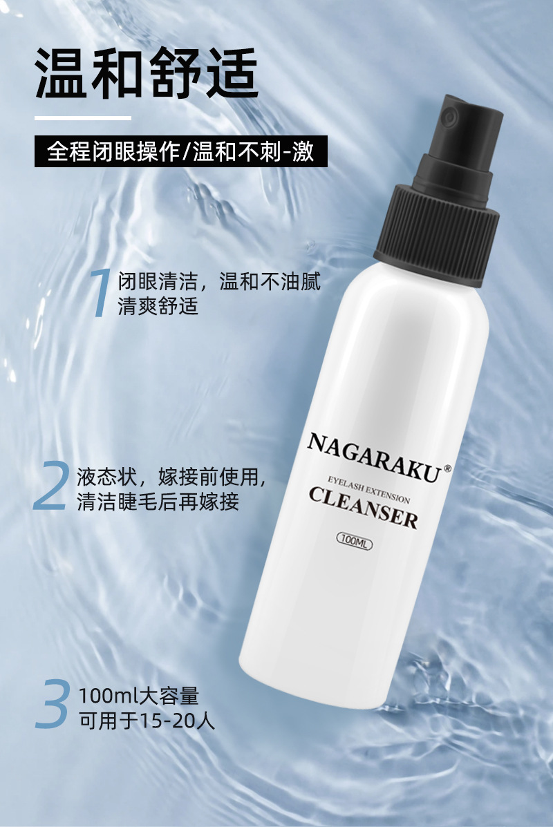 NAGARAKU solución de limpieza de pestañas injerto ojo eliminación suave grasa tratamiento de pestañas falsas solución de limpieza 100ml