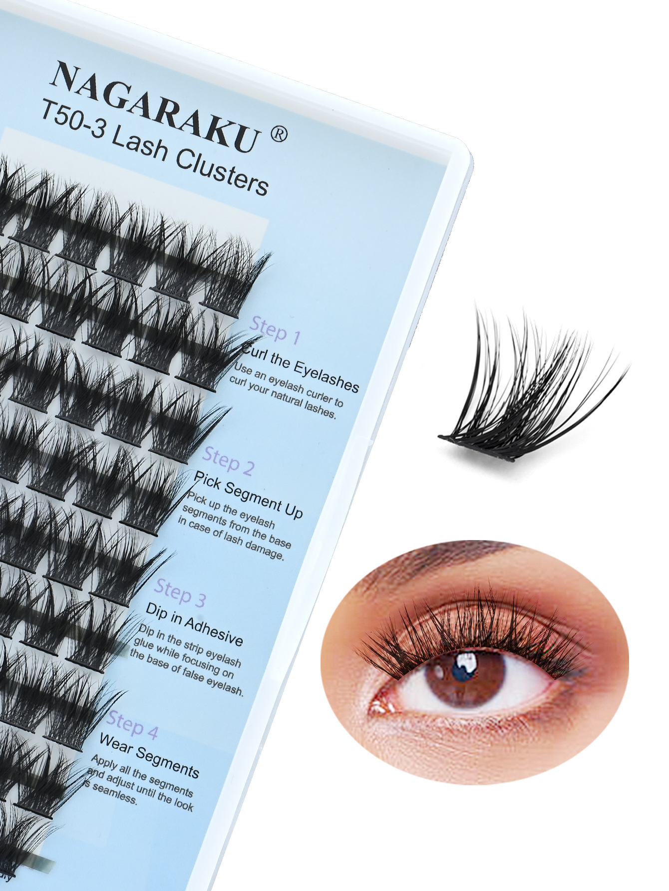 NAGARAKU T50 - 3 vello denso estilo europeo y americano de largura segmentación un solo racimo autoinjerto pestañas falsas