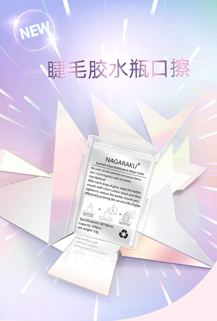 NAGARAKU Injerto de pegamento de pestañas botella boca limpie no es fácil dejar marcas Herramientas de limpieza de pestañas hoja de algodón 200 piezas