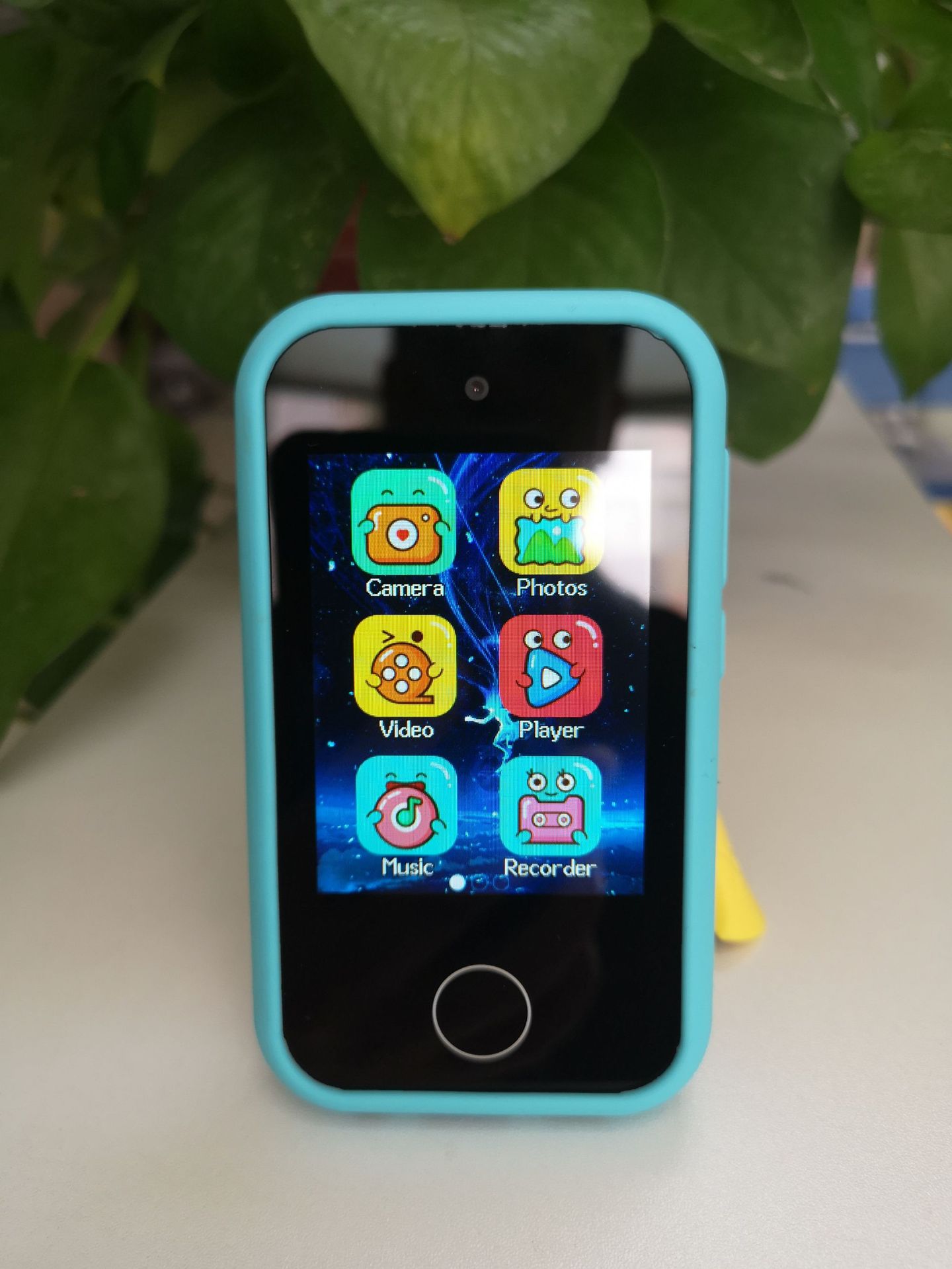 本产品儿童手机S3,主要特点是大屏幕2.8寸可触摸功能,有手电简,时间,秒表,可以拍照,录像,大头贴变化,玩小游戏等功能,支持32G内存卡,配件有说明书,充电线,TPV软胶壳(后面可印自己喜欢的图案),挂绳,天地盒子。
