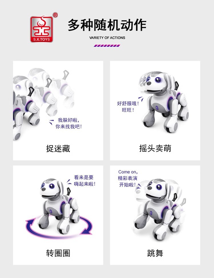 | Colores | El gerente de la tienda recomienda [gran dinero] versión mejorada-perro robot de control remoto-estándar oficial,[Nuevo] Smart Stunt Robot Dog [Gris-Yellow]-Estándar oficial,[Nuevo] Smart Stunt Robot Dog [Blanco Azul]-Estándar oficial |