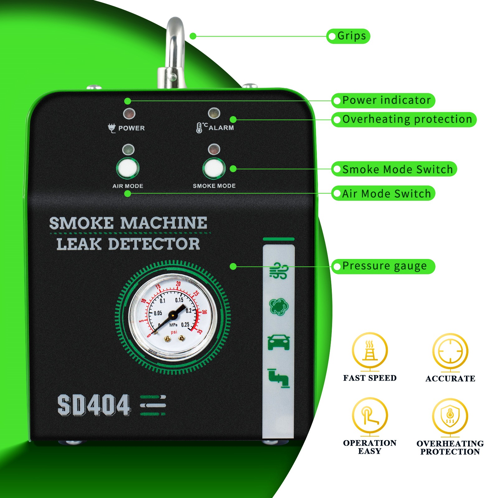 The SD404 is a professional device specifically designed for detecting leaks in auto pipe systems.This detector is engineered to identify leaks in different pipe systems of vehicles. It is a versatile tool suitable for all kinds of pipe systems as well as the EVAP system. It is highly efficient in quickly and precisely locating leakages in various pipe systems, including but not limited to the EVAP system, intake system, and exhaust system of automobiles and motorcycles. It is applicable to a wide range of pipe systems such as fuel pipes, air intake systems, and cooling tanks.
