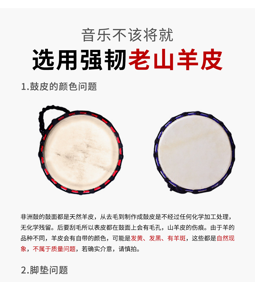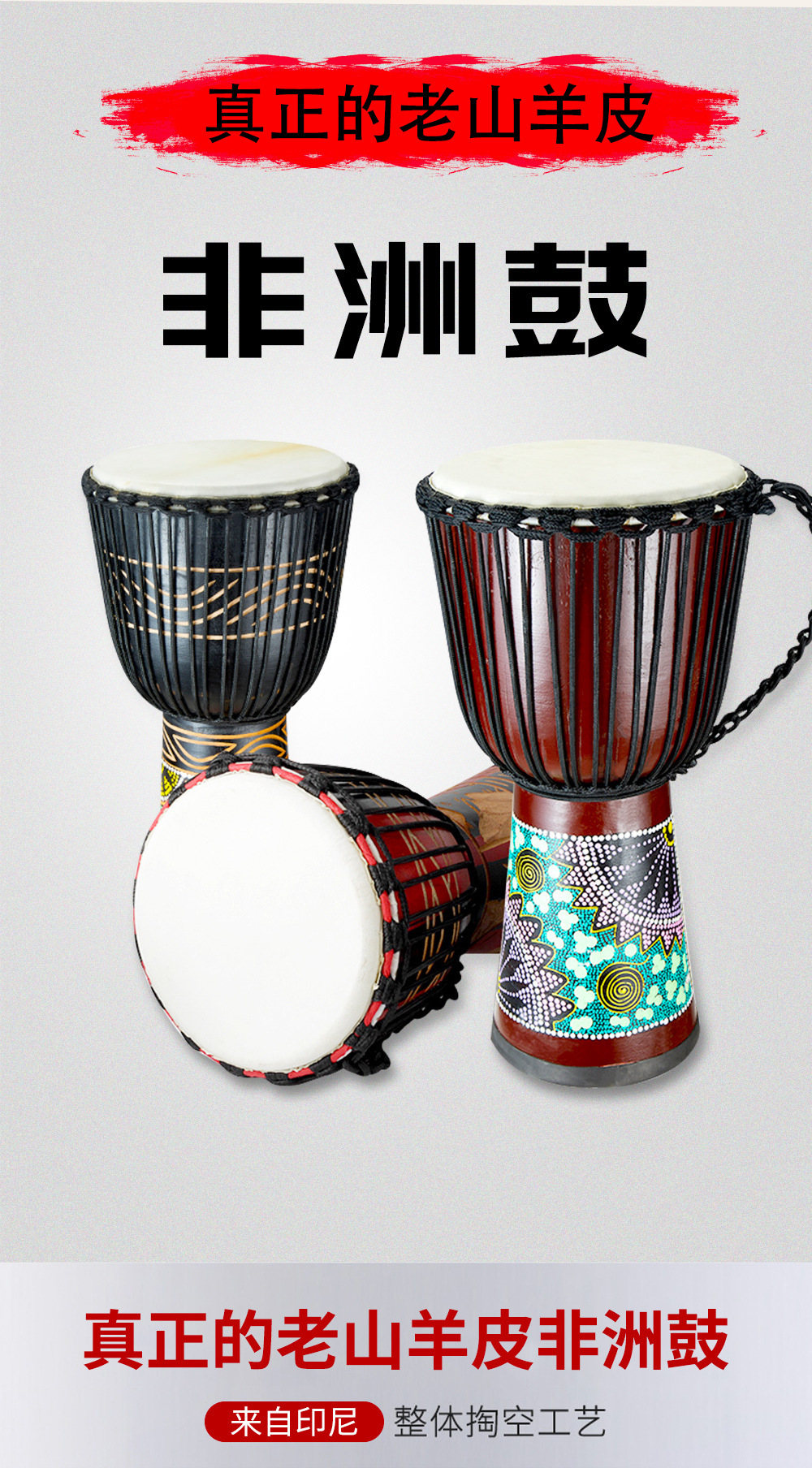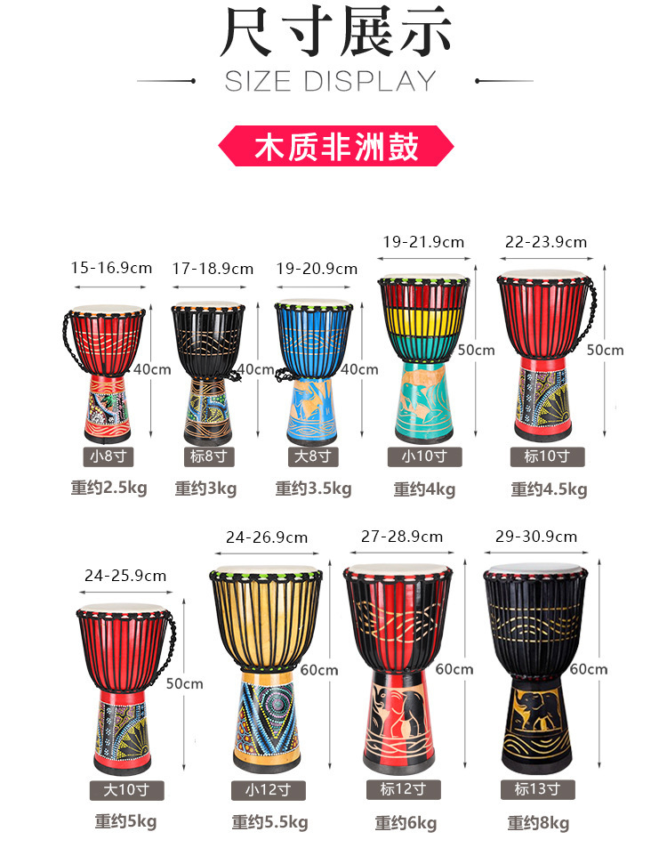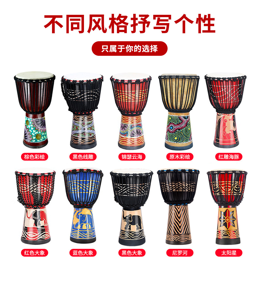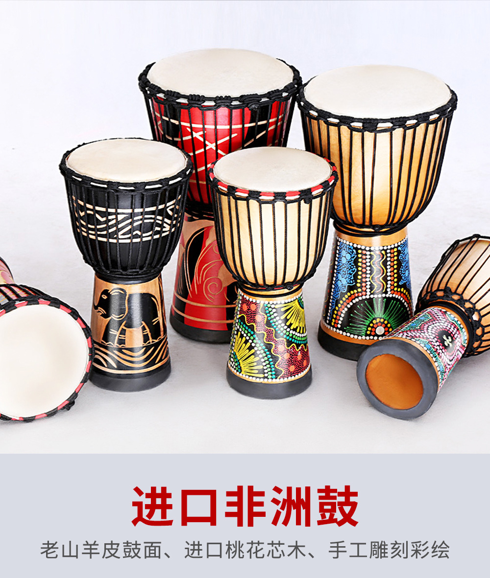 Tambor africano profesional 12 pulgadas adulto principiante Lijiang tambor de mano piel de cabra madera entera hueca núcleo de melocotón madera tambor de mano importado