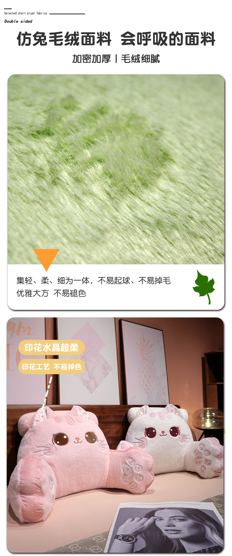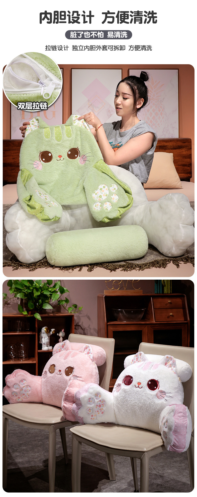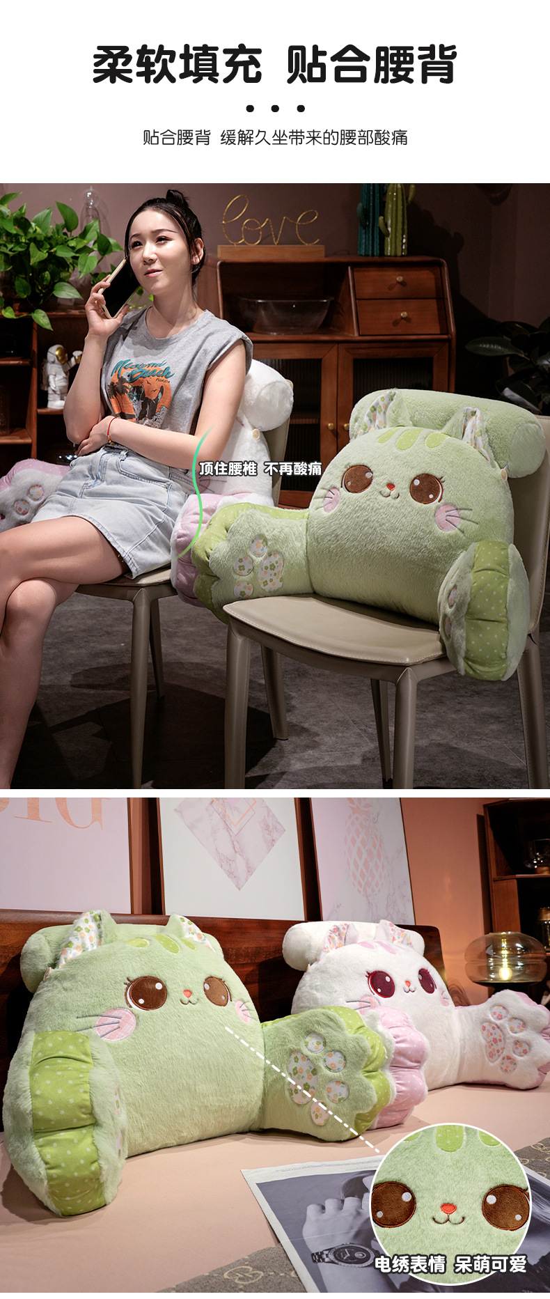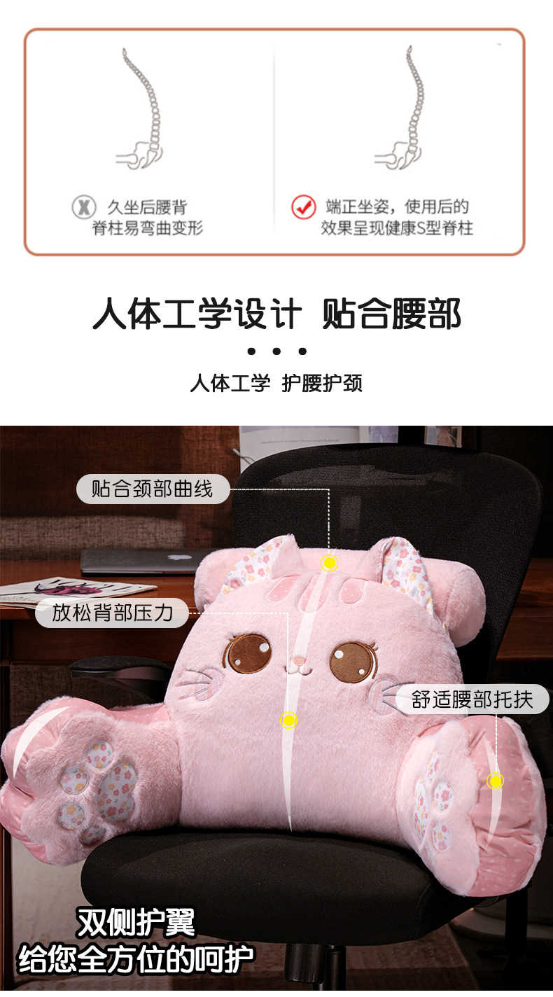 Cojín de gato para cabecera, soporte lumbar para cama, oficina o sofá