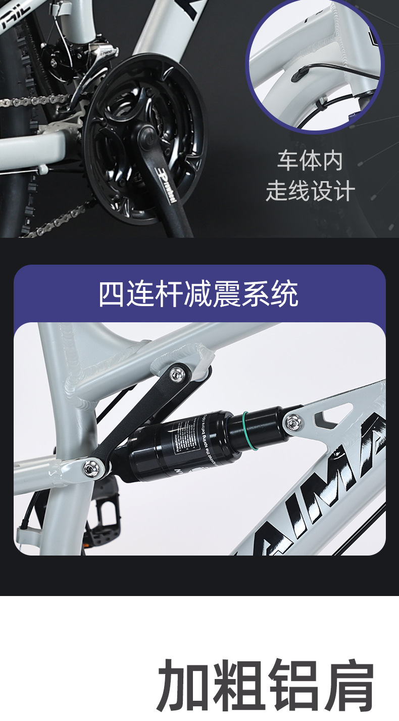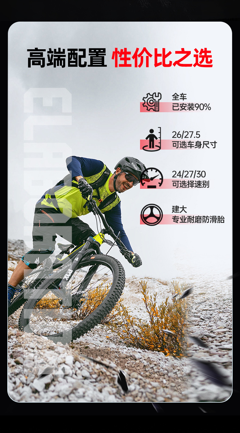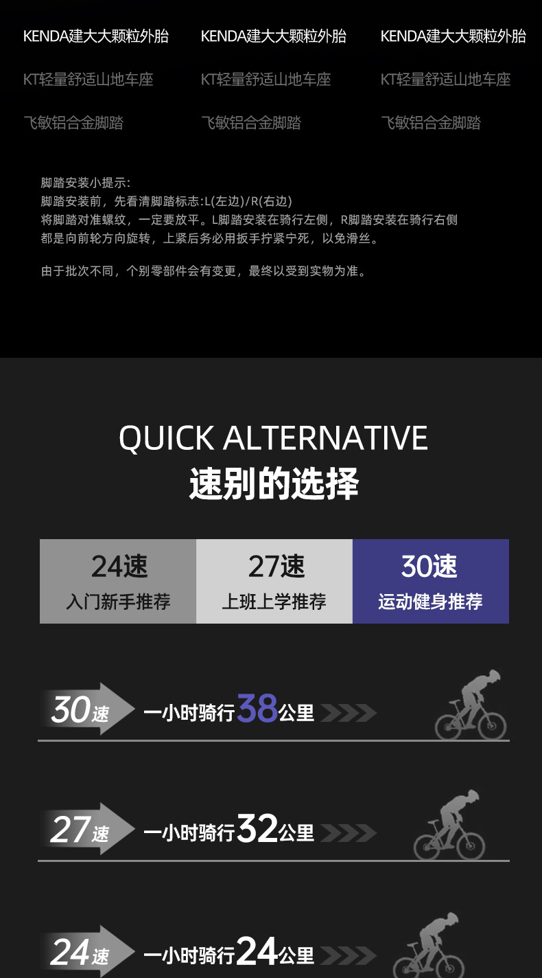 | Tamaño | 26 pulgadas-24 velocidades (adecuado para más de 160),26 pulgadas-27 velocidades (adecuado para más de 160),26 pulgadas-30 velocidades (adecuado para más de 160),27,5 pulgadas-24 velocidades (adecuado para más de 175),27,5 pulgadas-27 velocidades (adecuado para más de 175),27,5 pulgadas-30 velocidades (adecuado para más de 175) |