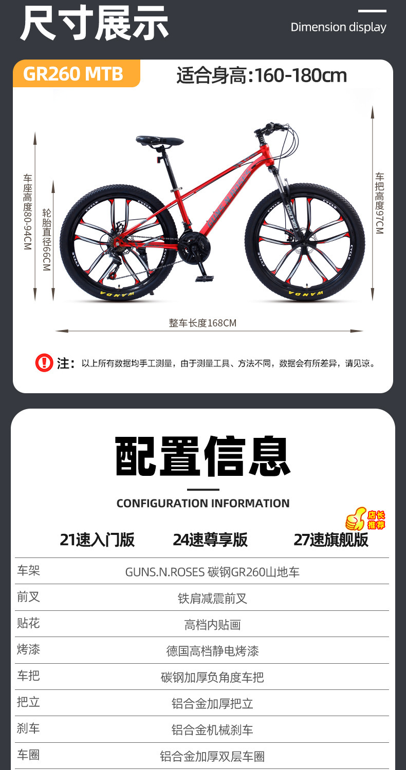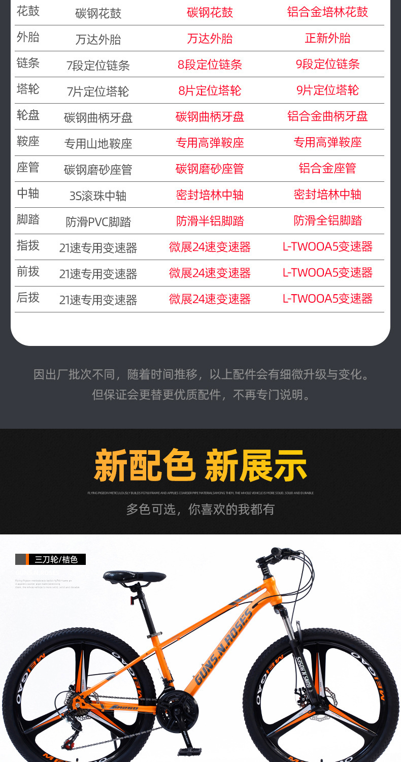 | Tamaño | 26 pulgadas 21 velocidades,24 pulgadas 21 velocidades,26 pulgadas 24 velocidades,24 pulgadas 24 velocidades,26 pulgadas 27 velocidades,24 pulgadas 27 velocidades,26 pulgadas 30 velocidades,24 pulgadas 30 velocidades |