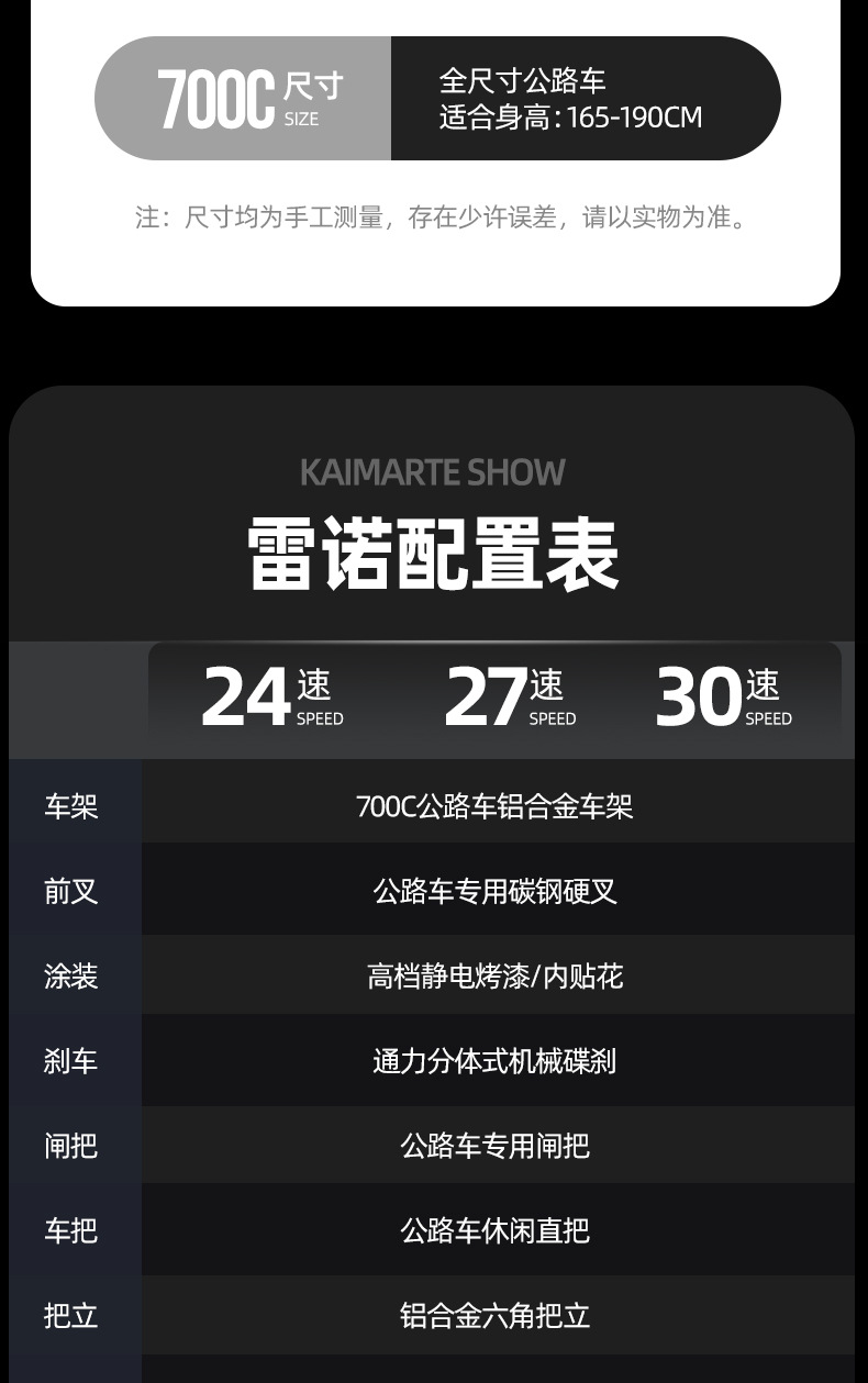 | Tamaño | Adecuado para altura 160 - 190 - 24 velocidades, adecuado para altura 160 - 190 - 27 velocidades, adecuado para altura 160 - 190 - 30 velocidades |