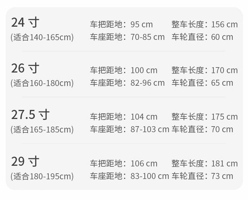 | Tamaño | 24 pulgadas 21 velocidades,26 pulgadas 21 velocidades,27,5 pulgadas 21 velocidades,24 pulgadas 24 velocidades,26 pulgadas 24 velocidades,27,5 pulgadas 24 velocidades,24 pulgadas 27 velocidades,26 pulgadas 27 velocidades,27,5 pulgadas 27 velocidades,24 pulgadas 30 velocidades,26 pulgadas 30 velocidades,27,5 pulgadas de 30 velocidades |