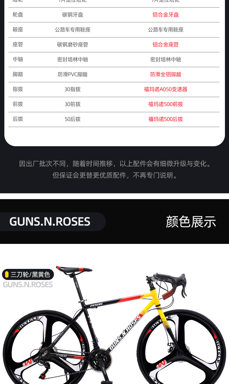 | Color | Rueda de radios [negro y amarillo] Edición estándar,Rueda de radios [negro y verde] Edición estándar,Rueda de radios [negro naranja] Edición estándar,Rueda de radios [negro y azul] Edición estándar,Rueda de radios [negro y amarillo] Transmisión Shimano,Rueda de radios [negro y verde] Transmisión Shimano,Rueda de radios [negro naranja] Transmisión Shimano,Rueda de radios [negro y azul] Transmisión Shimano,Rueda integrada de tres cuchillos [negro y amarillo] Estándar,Rueda integrada de tres cuchillos [negro y verde] Estándar,Rueda integrada de tres cuchillos [negro Naranja] Estándar,Rueda integrada de tres cuchillos [negro y azul] Estándar,Rueda integrada de tres cuchillos [negro y amarillo] Transmisión Shimano,Rueda integrada de tres cuchillos [negro y verde] Transmisión Shimano,Rueda integrada de tres cuchillos [naranja Negro] Transmisión Shimano,Rueda integrada de tres cuchillos [negro y azul] Transmisión Shimano |