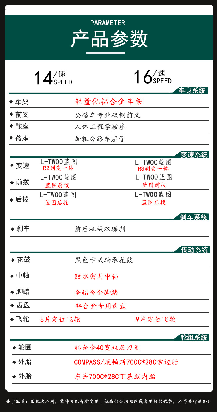 | Tamaño | 700C 14 velocidades,700C 16 velocidades |