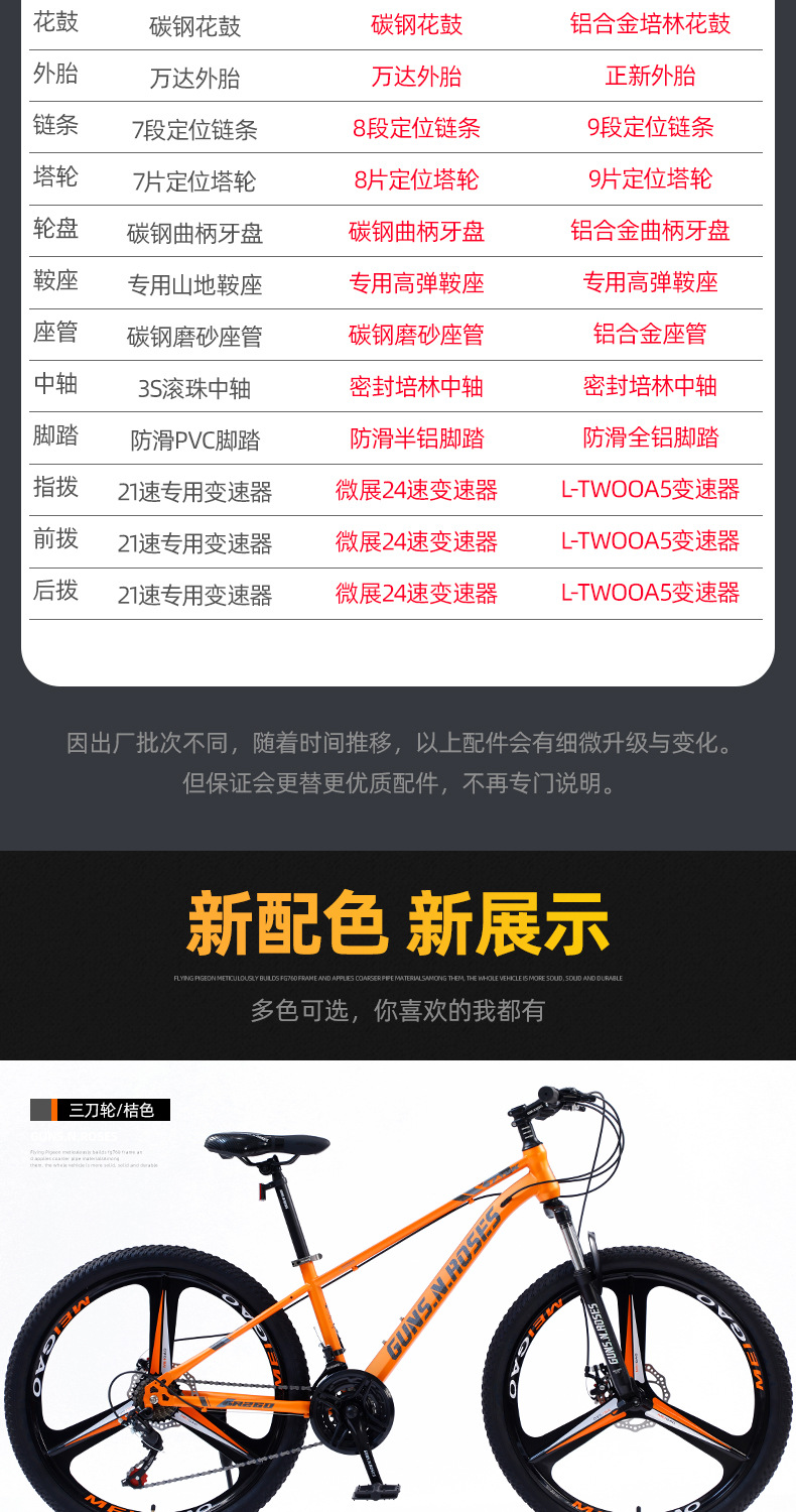 | Tamaño | 26 pulgadas 21 velocidades,24 pulgadas de 21 velocidades,26-inch 24 velocidades,24-velocidad 24-inch,26 pulgadas 27 velocidades,24-inch 27-speed,26 pulgadas de 30 velocidades,24 pulgadas de 30 velocidades |