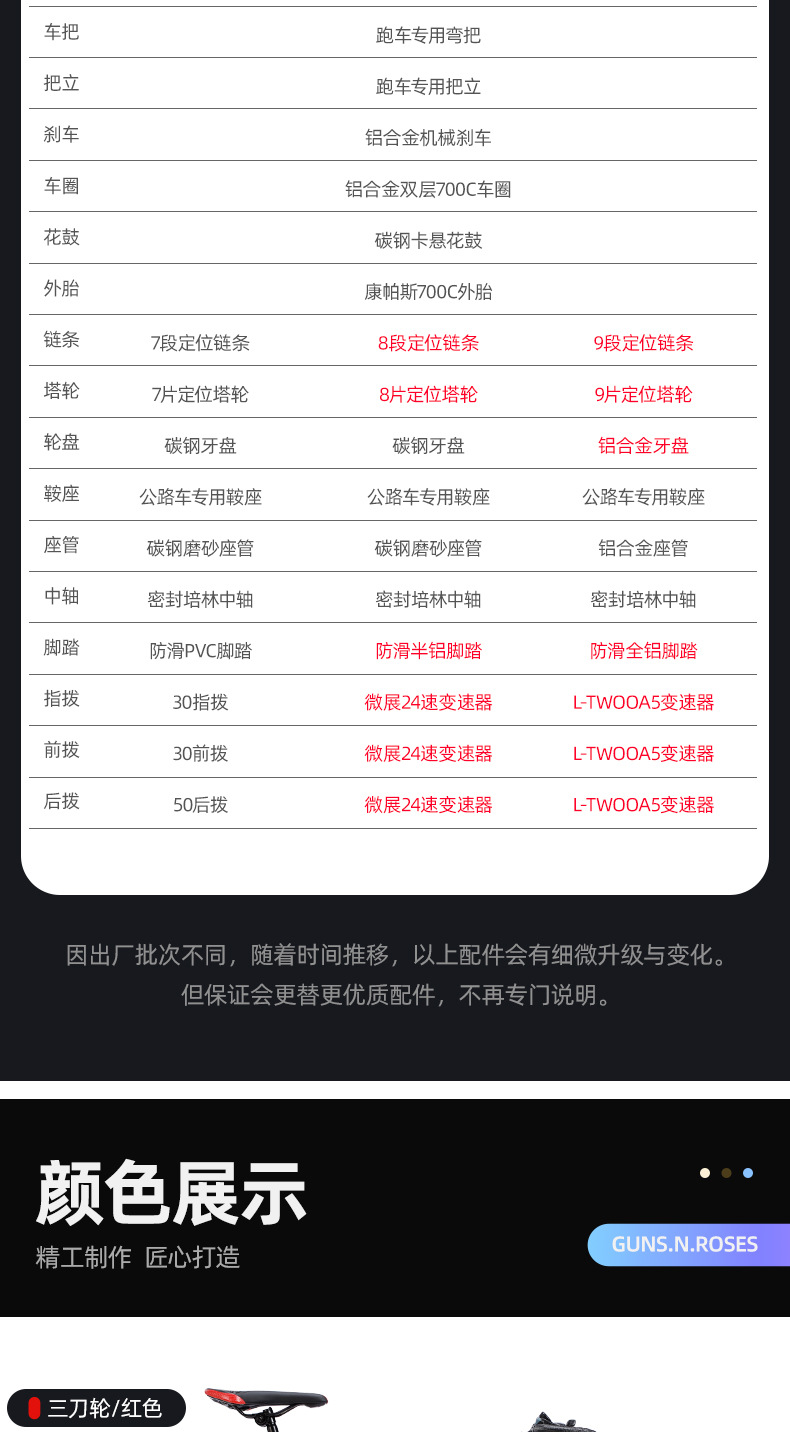 | Color | Rueda de radios 700c [Rojo],Rueda de radios 700c [Verde],Rueda de radios 700c [Azul],Rueda de radio 700c [naranja],Rueda integrada de tres cuchillos [Rojo],Rueda integrada de tres cuchillos [Verde],Rueda integrada de tres cuchillos [Azul],Rueda integrada de tres cuchillos [Naranja] |