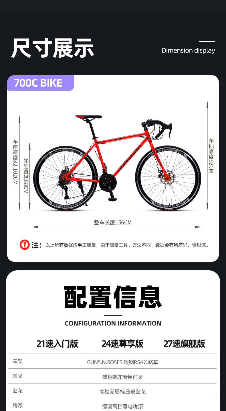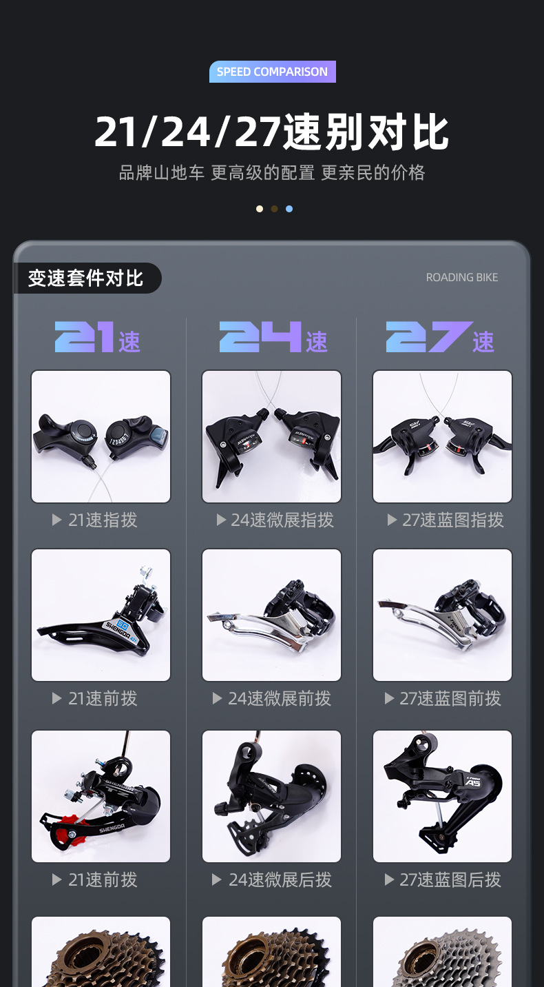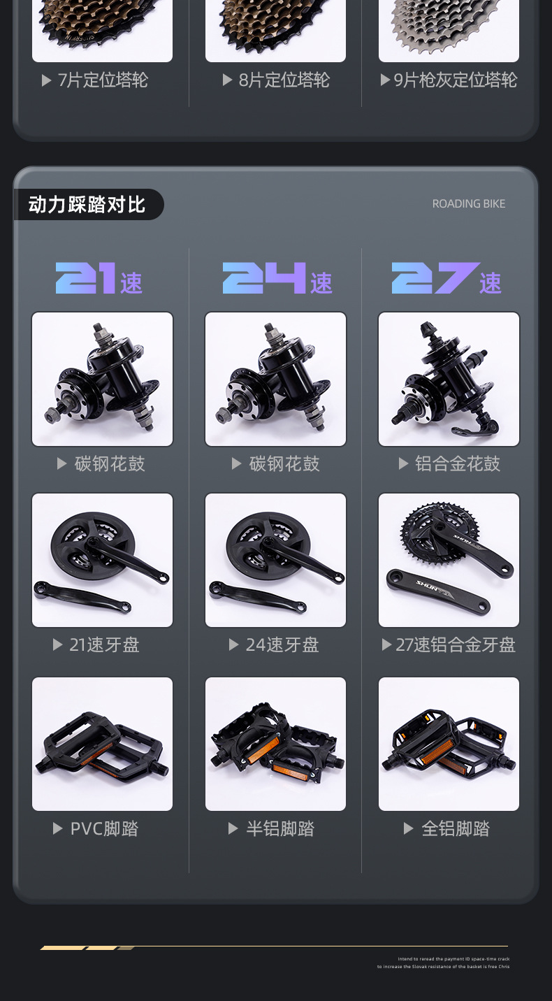 | Tamaño | Velocidad de 700C * 21,700C * 24 velocidad,700C * 27 velocidad |