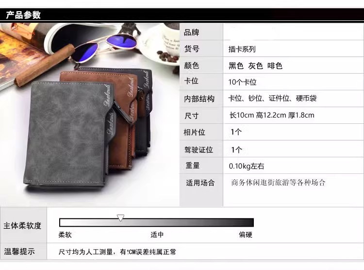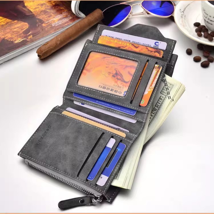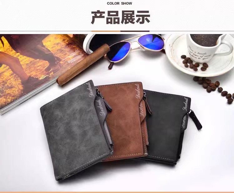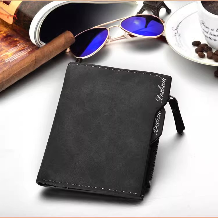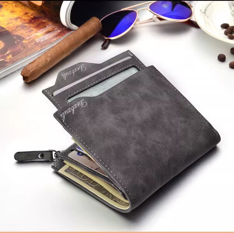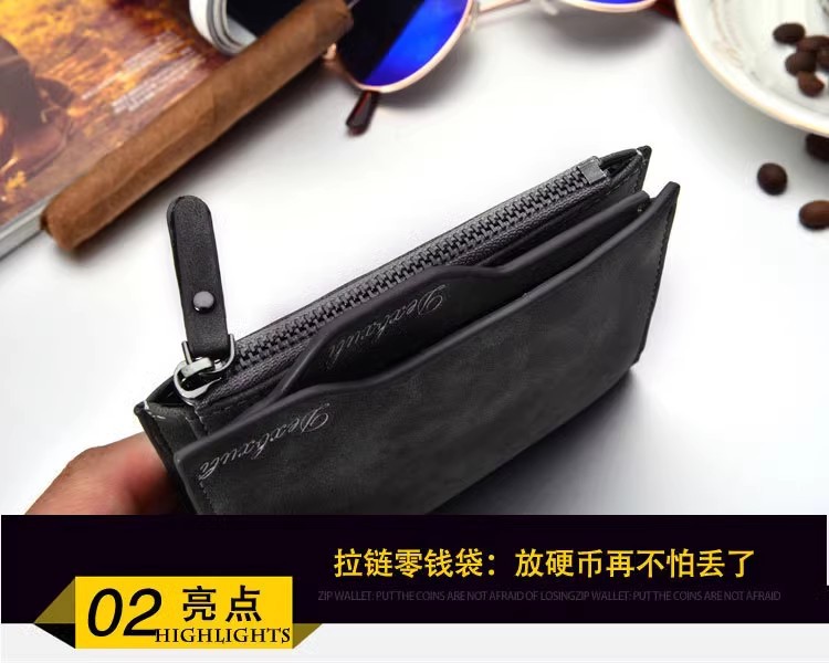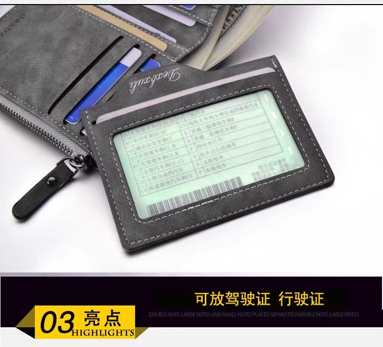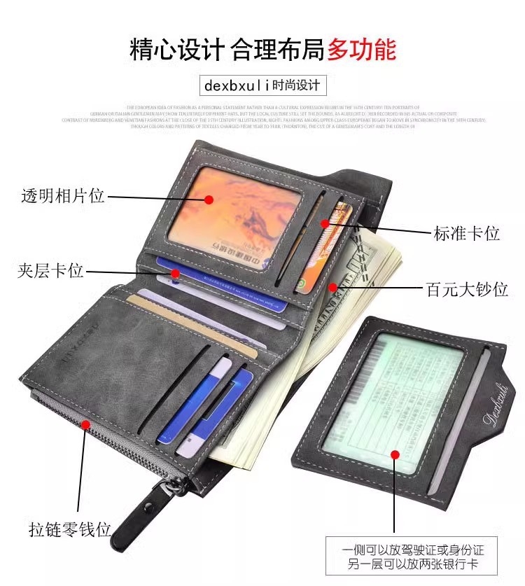 Cartera corta para hombre Cartera vertical multifuncional para múltiples tarjetas Cartera para tarjeta de dibujo para hombre Cartera con cremallera Cartera para billetes
