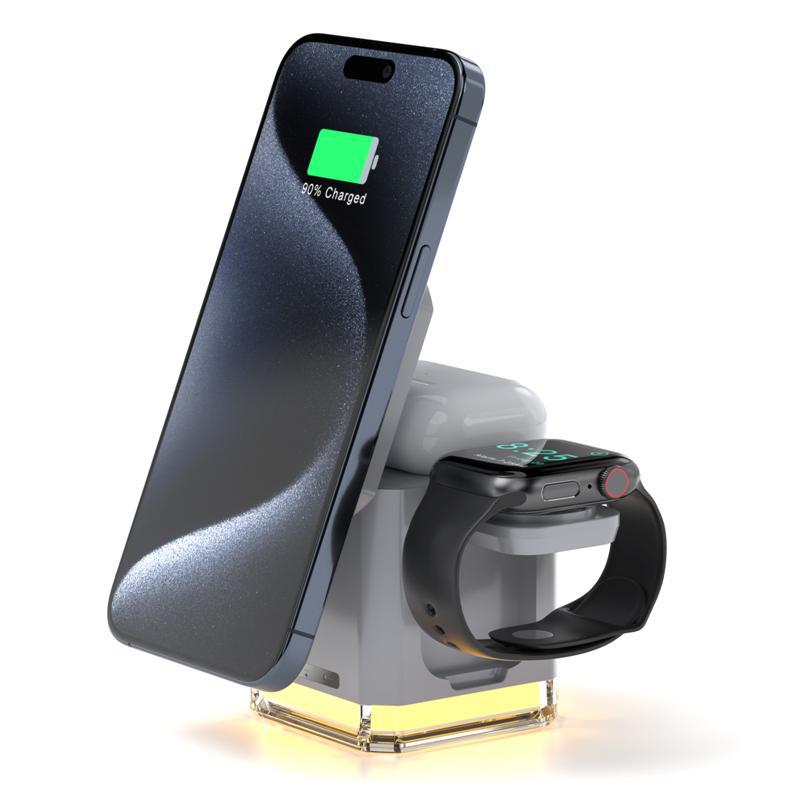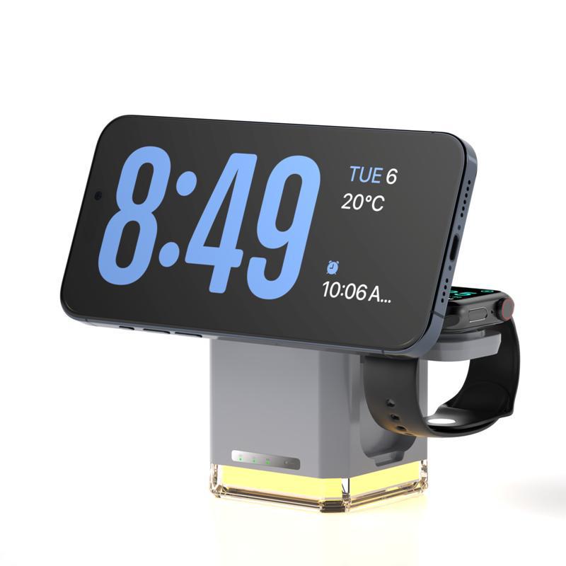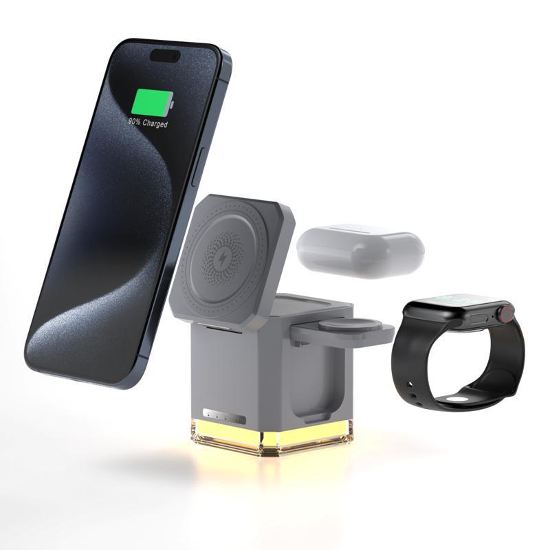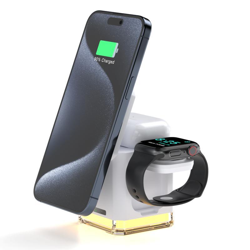 输出功率:磁吸手机5W/7.5W/10W/15W+手表发射3W+底座无线充耳机发射5W+LED灯