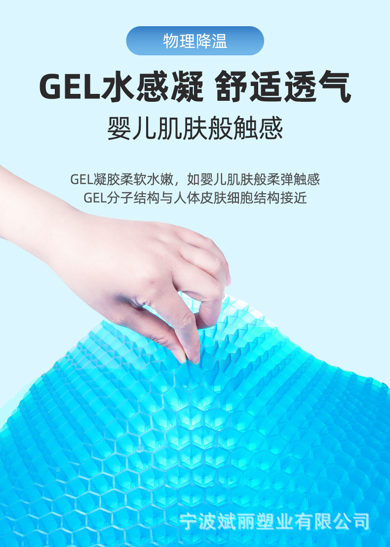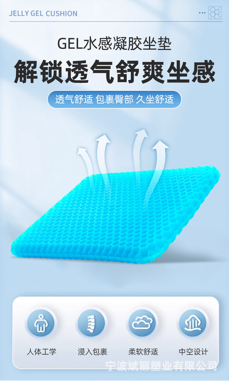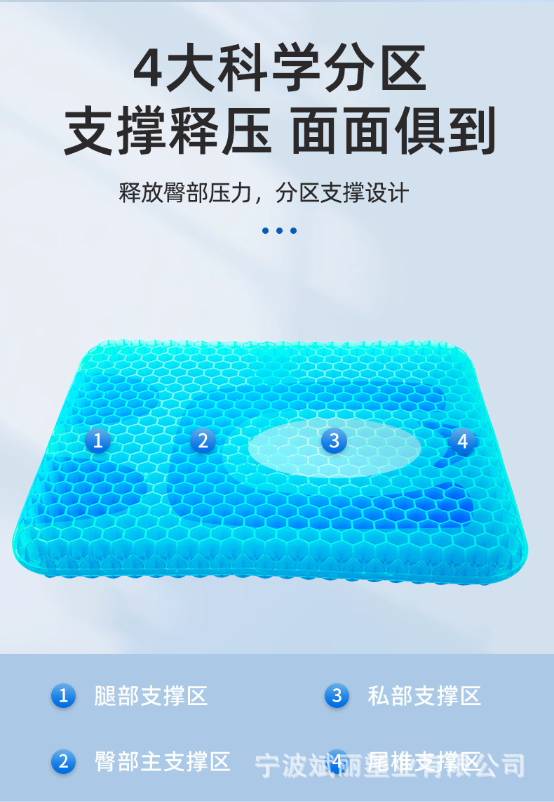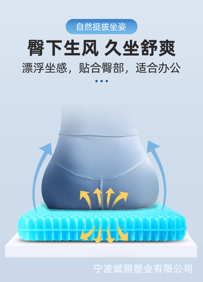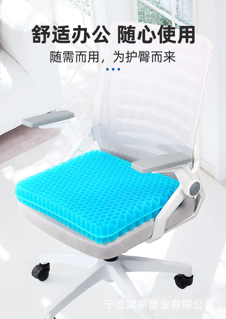 Cojín de verano de gel de nido de abeja más grueso al por mayor sedentario, no cansado, cojín de trasero transpirable, cojín de enfriamiento de coche