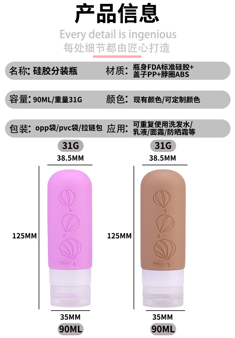 硅胶分装瓶 旅行分装瓶洗发水沐浴露 小瓶子 护肤品分装瓶小样瓶