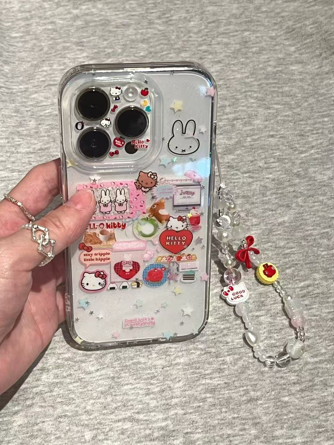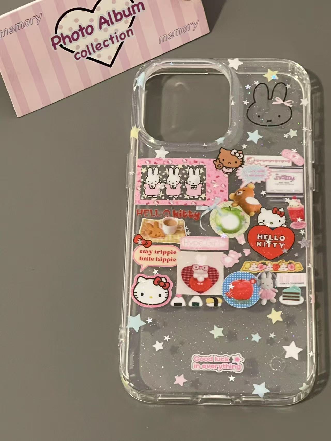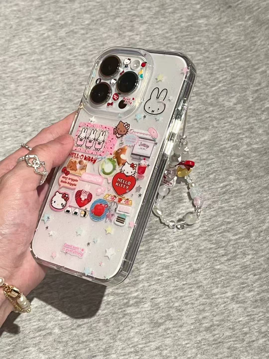 Niña ins brillo conejo kt ilustración para iphone16ProMax nuevo 14/15 funda para teléfono móvil Apple 13