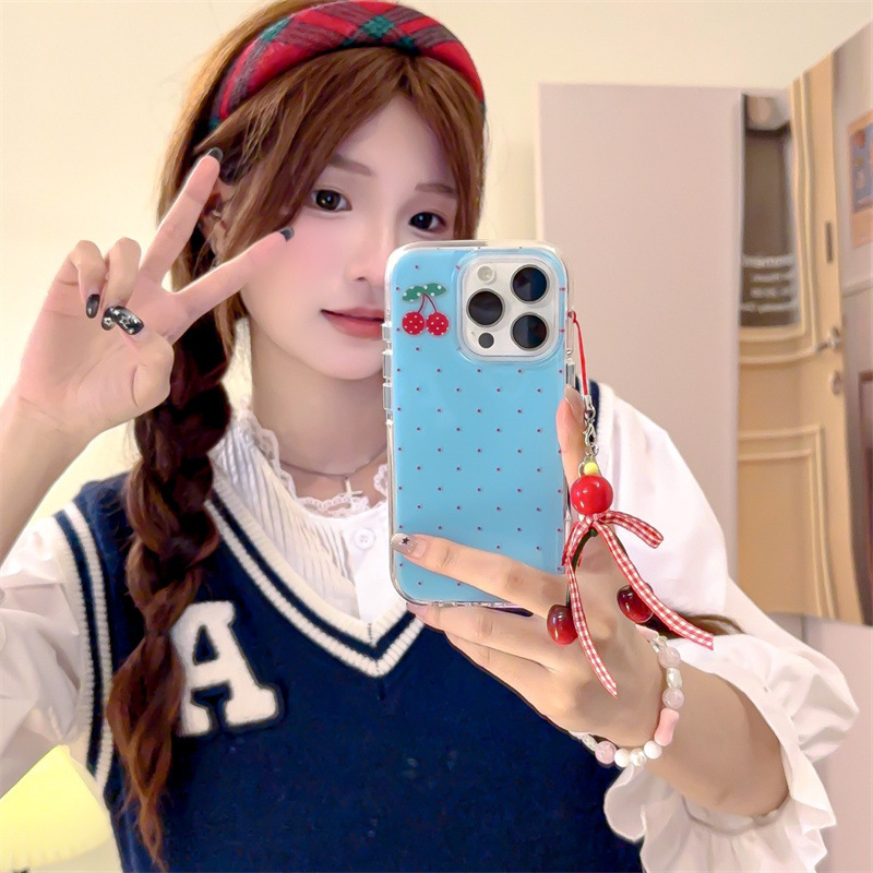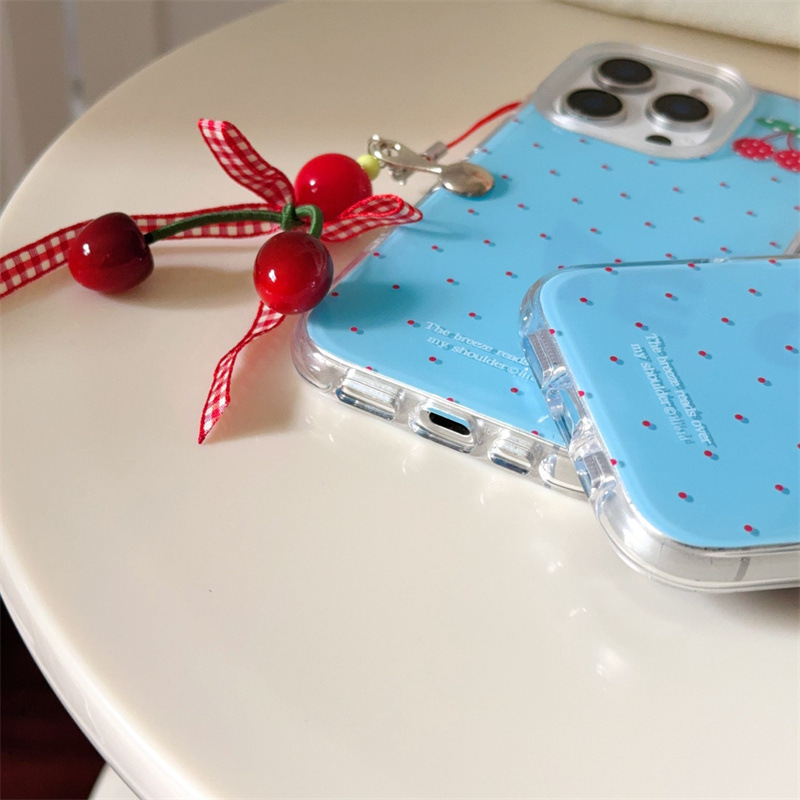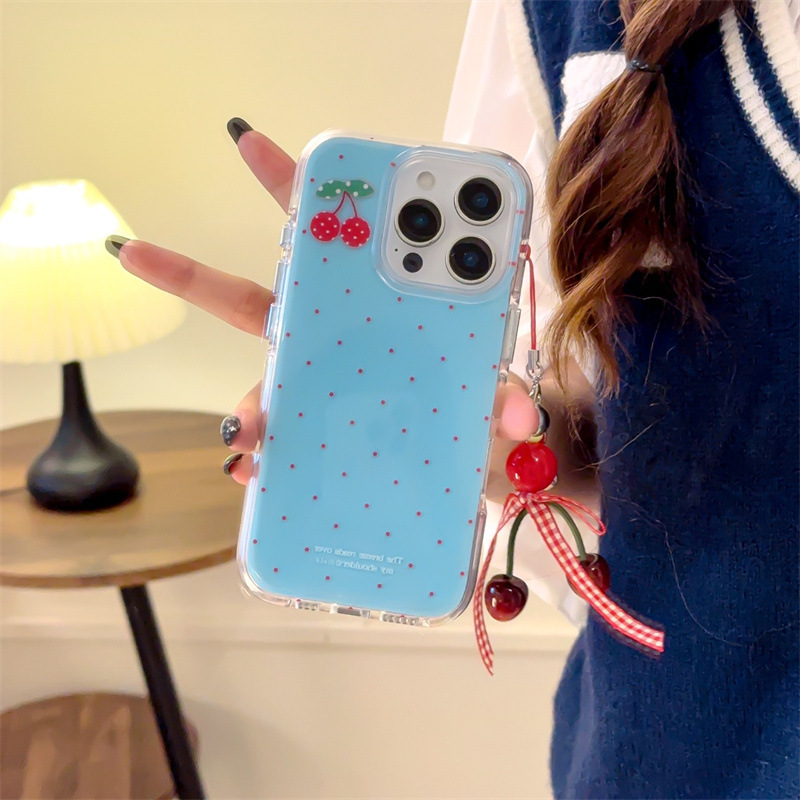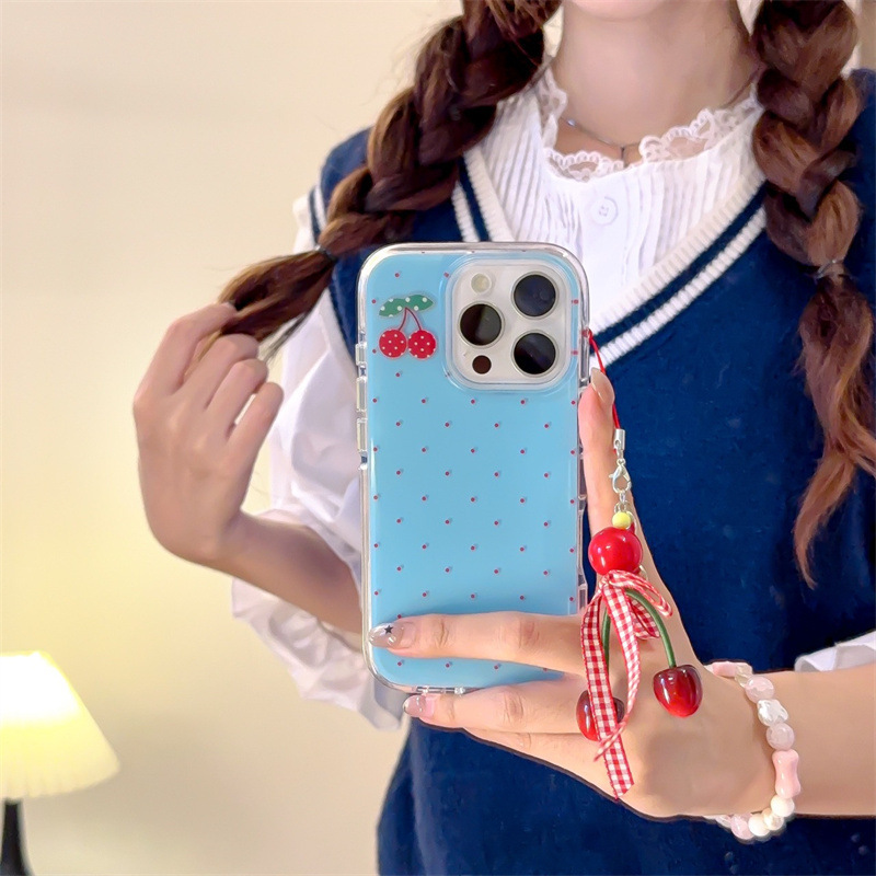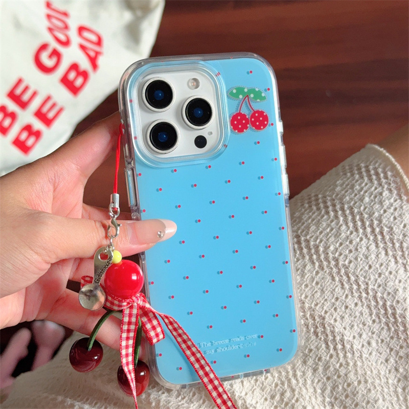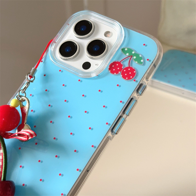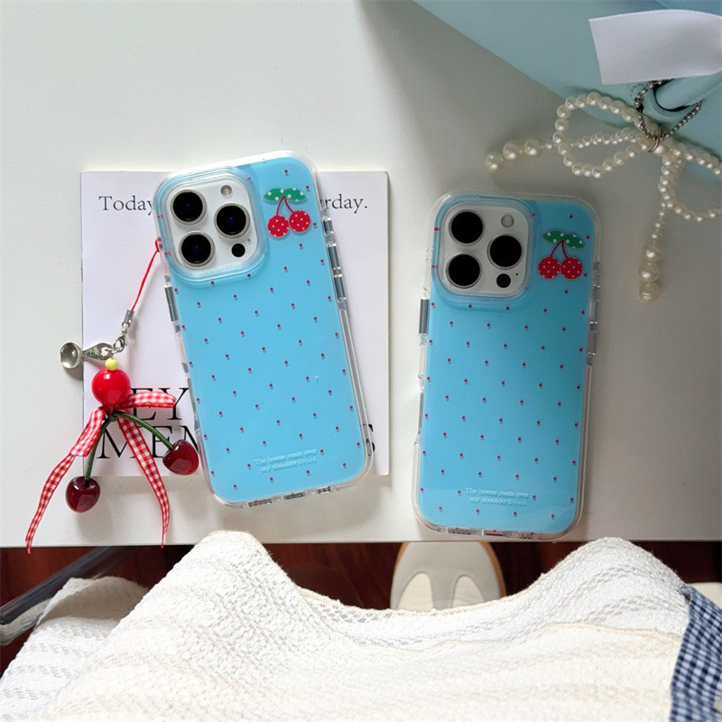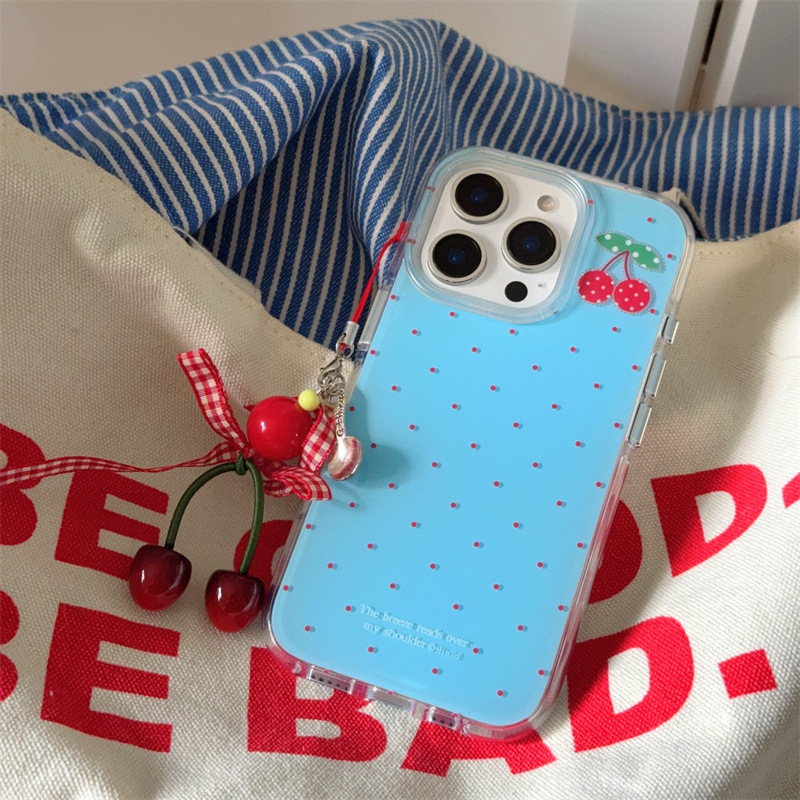 | Colores | Capa única-fondo azul lunares cereza-borde redondo kf,Colgante de fondo azul lunares cereza-borde redondo kf |