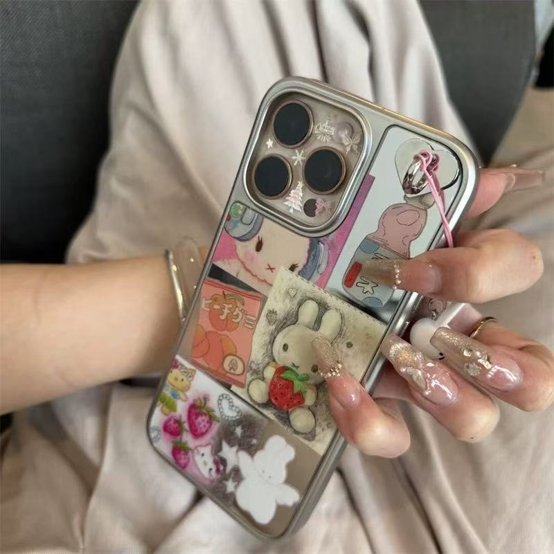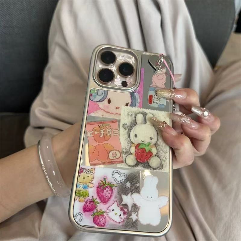 | Colores | Single-fresa conejo kt ilustración-chapado borde de plata xk,Colgante fresa conejo kt ilustración-chapado borde plateado xk |