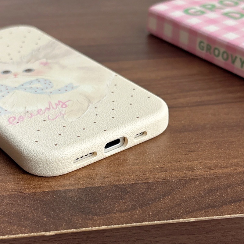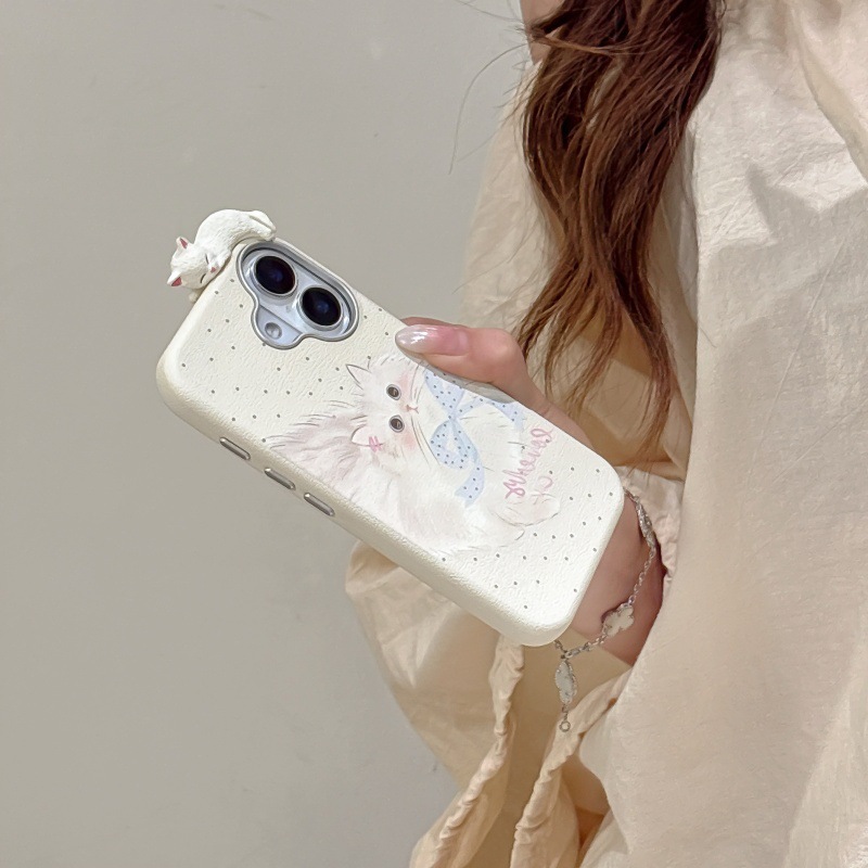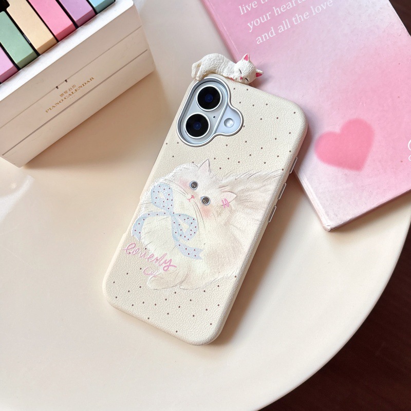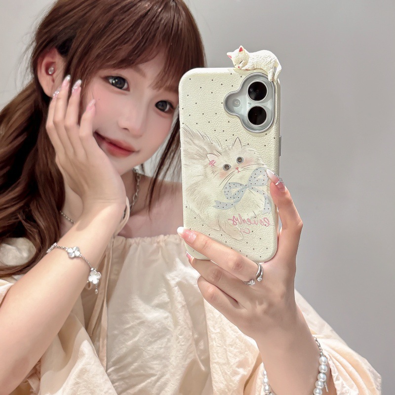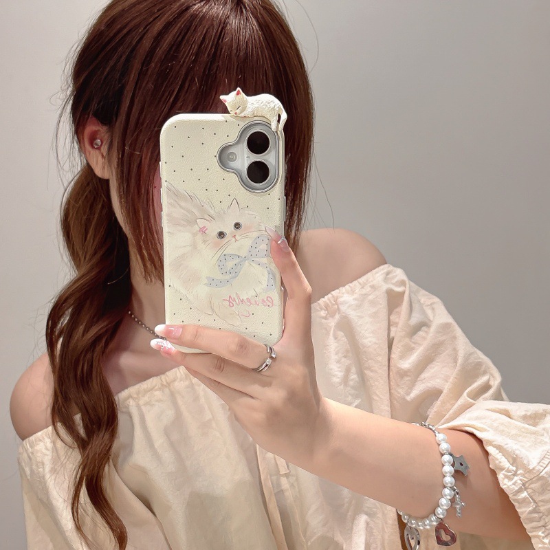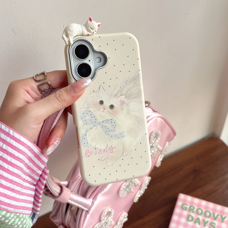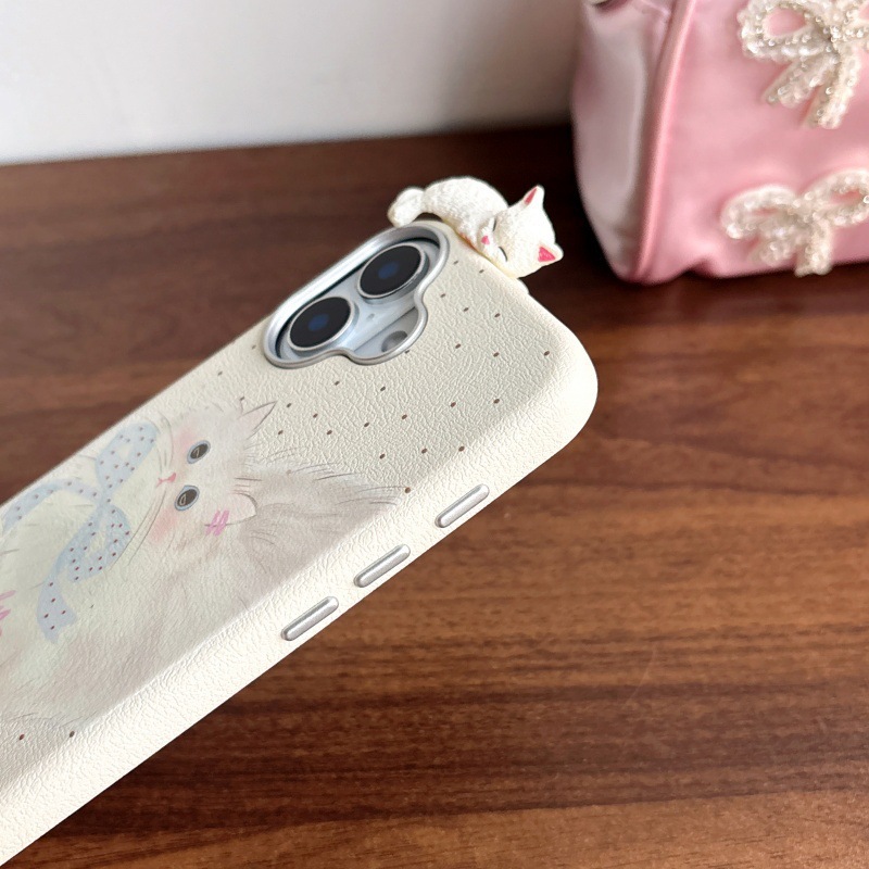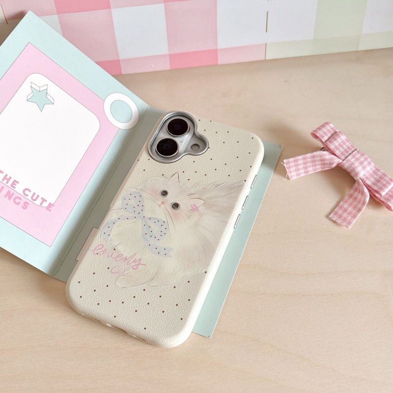 Linda caricatura pantalla completa KT gato ilustración para Apple 16ProMax funda para teléfono móvil 15Pro bowknot 14/13 nuevo