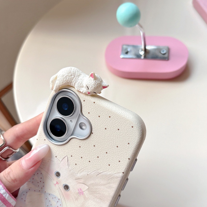 Estilo ins lindo lunares gato 16ProMax chica 13 funda para teléfono móvil para Apple 15P estéreo iPhone14