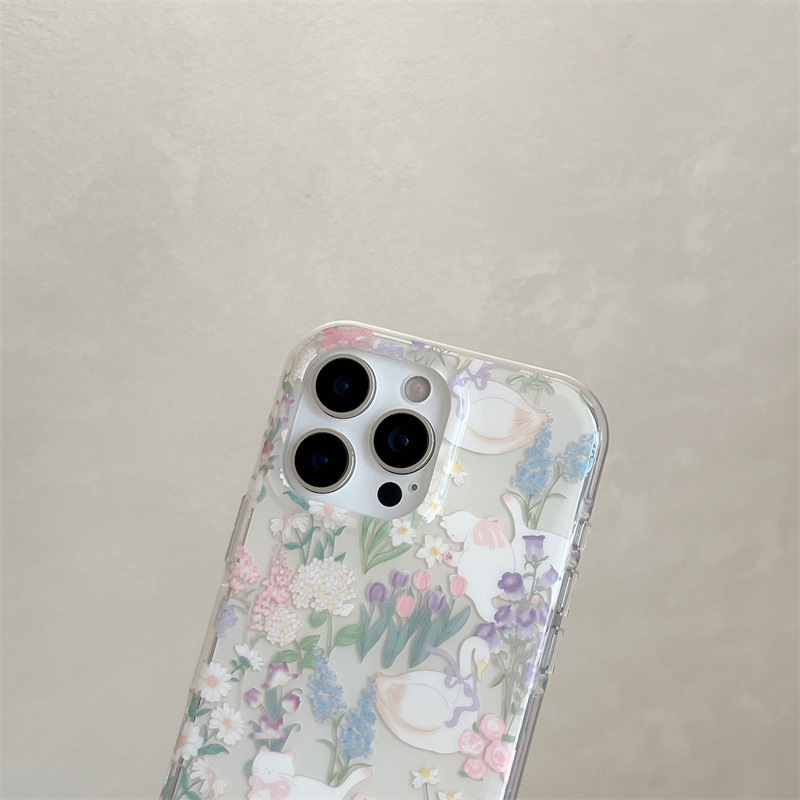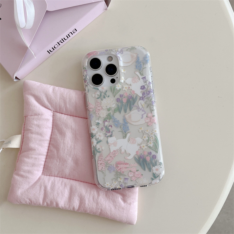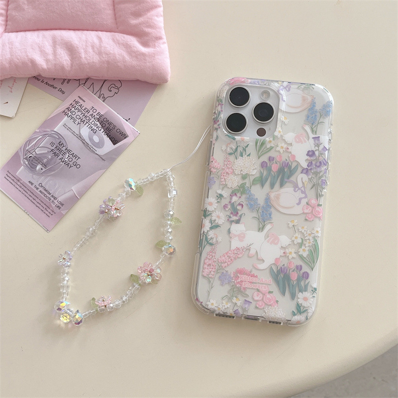 Pequeño gato de flores frescas para Apple 16ProMax funda para teléfono móvil cadena 15Pro 14 verano 15PM nuevo 14P