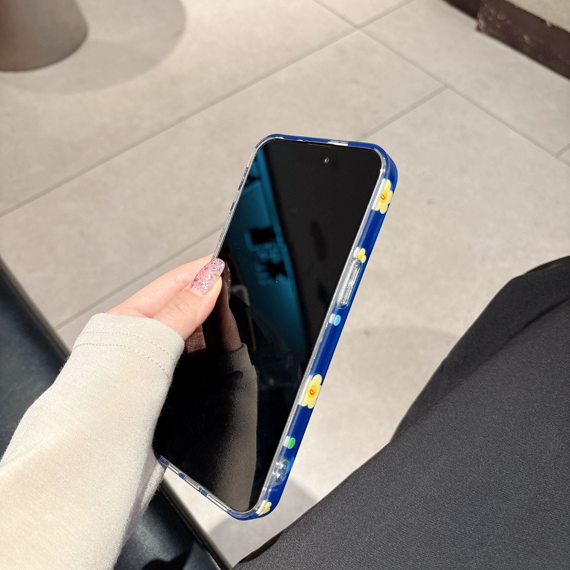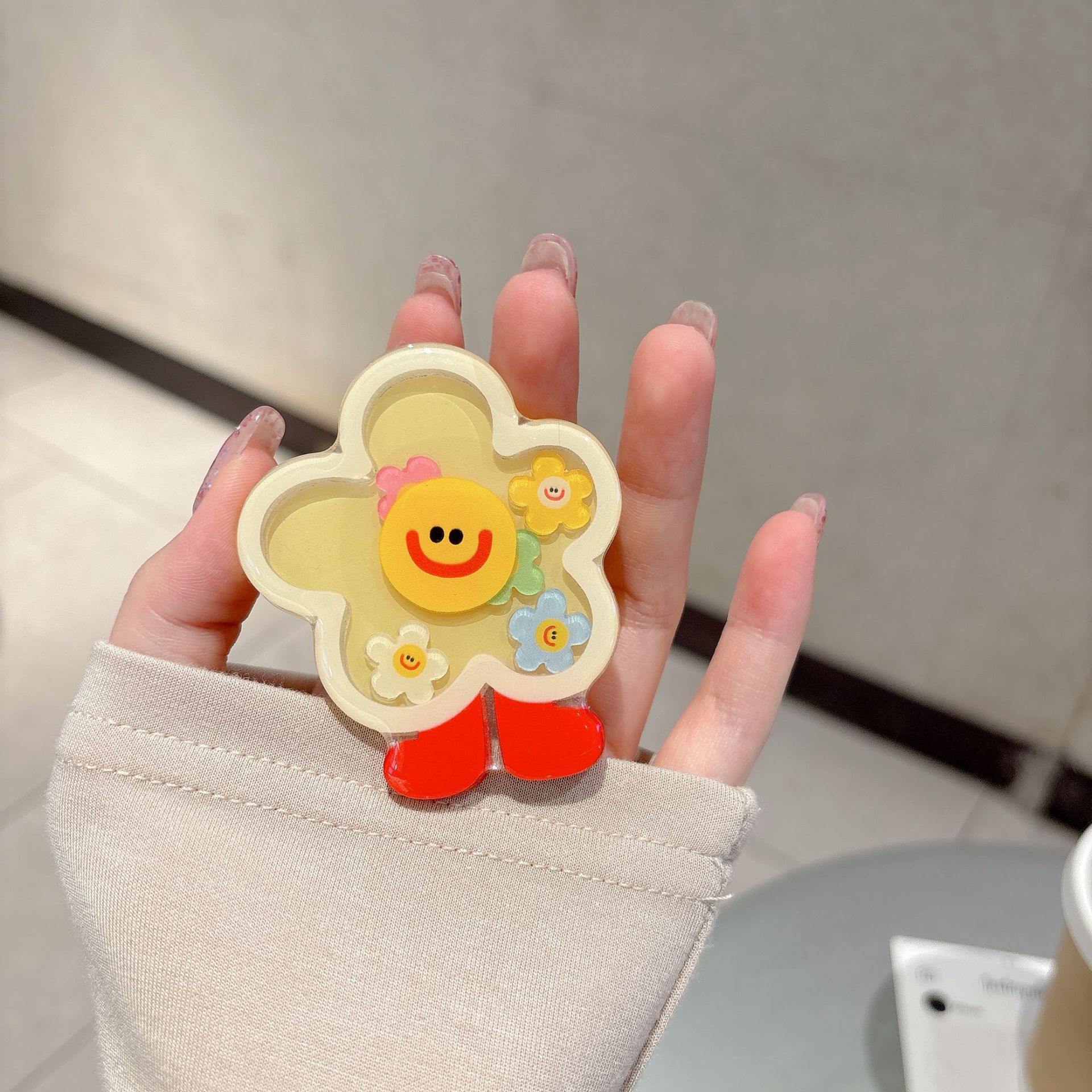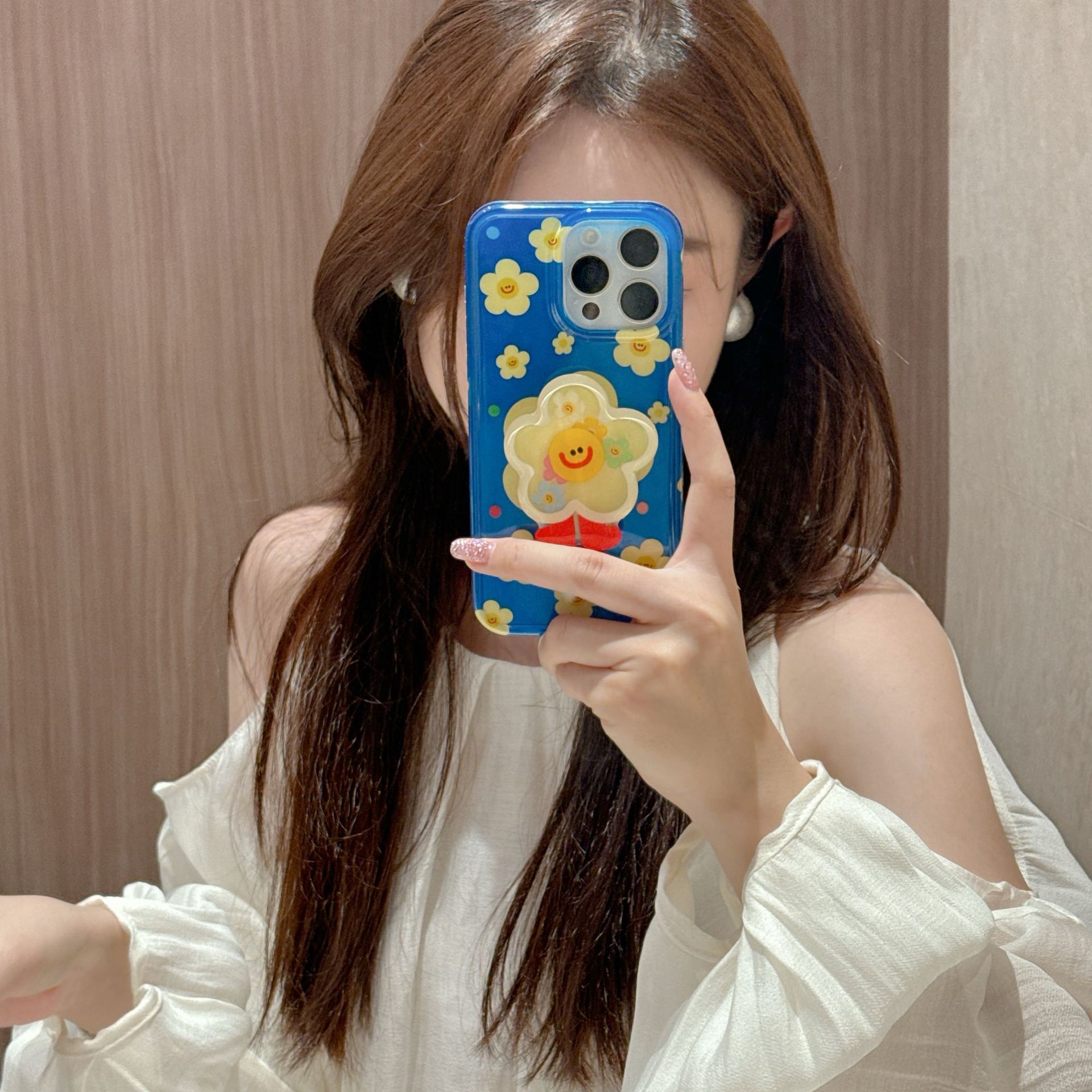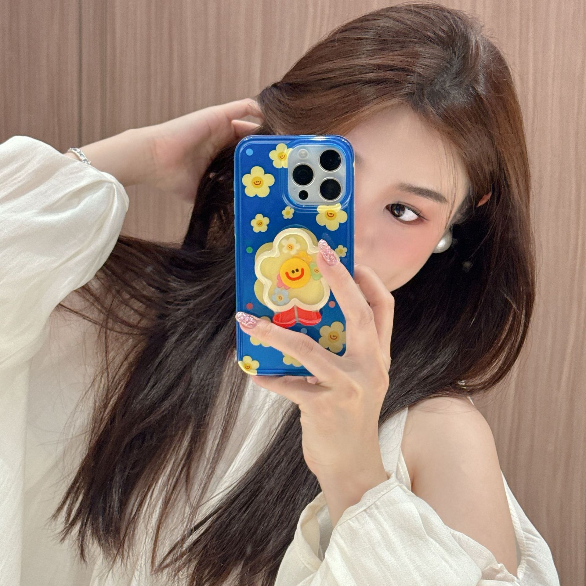 Capa única-fondo azul pantalla completa amarillo cara sonriente flor NK,Soporte fondo azul pantalla completa amarillo cara sonriente flor NK
