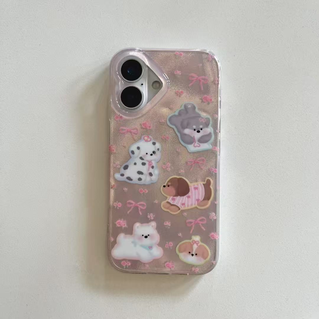Summer Girl Cute Bowknot Puppy Adecuado para 16ProMax Feather Funda para teléfono móvil 14/15Pro nicho 13 Mujer