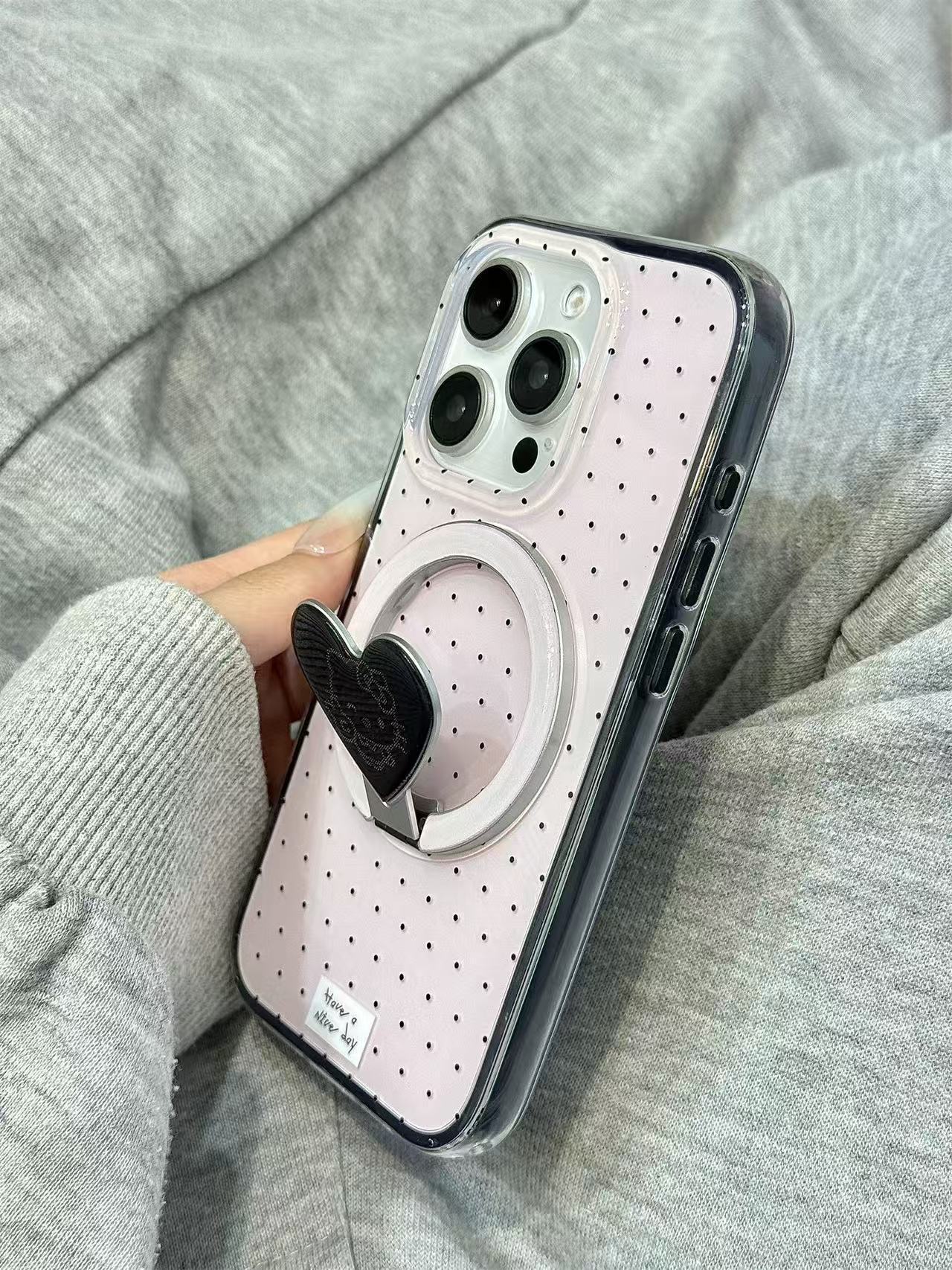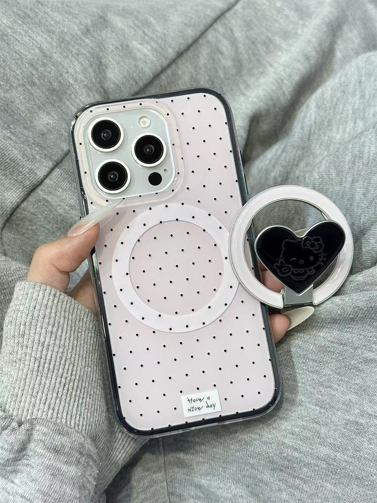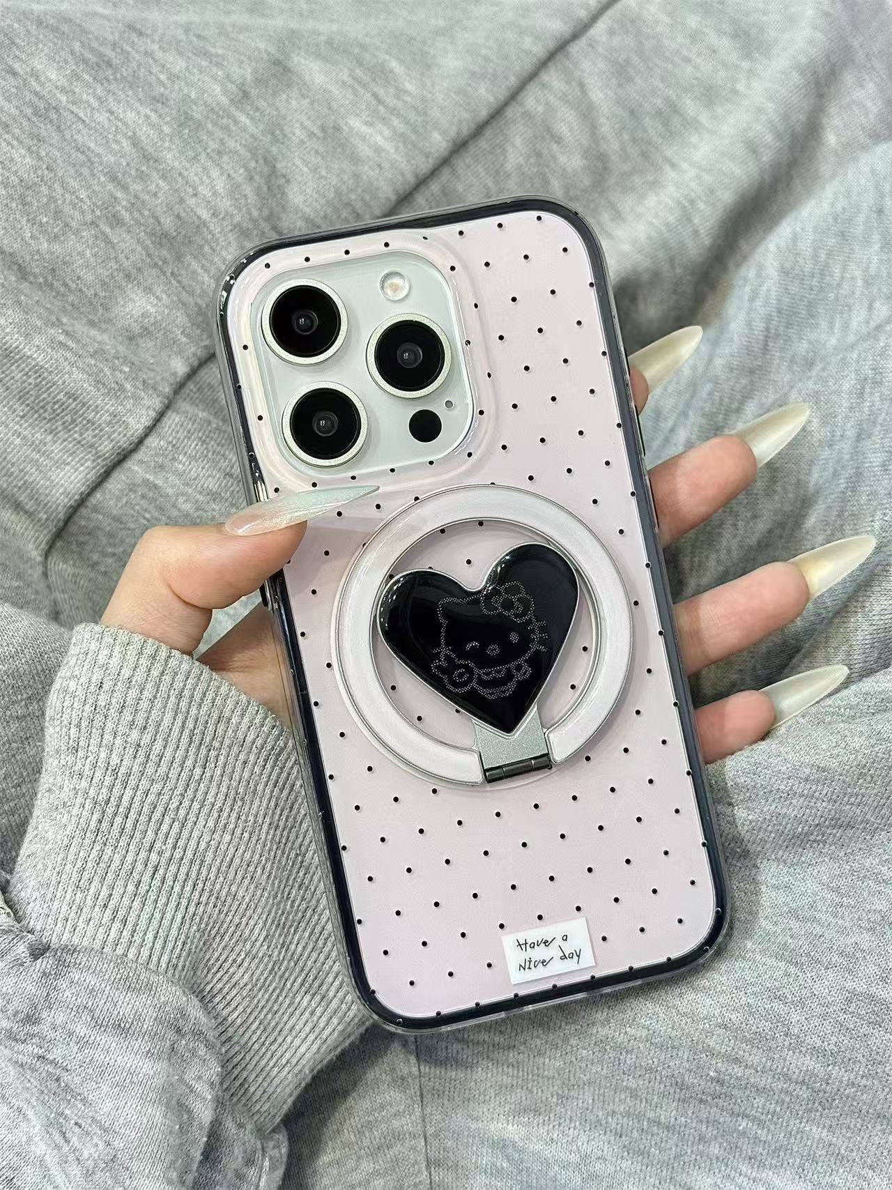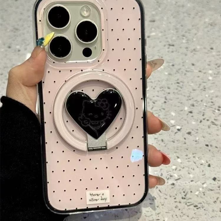 Base de maquillaje negro lunares KT soporte para Apple 16ProMax funda para teléfono móvil 15Pro atracción magnética 14/13 nuevo 15PM