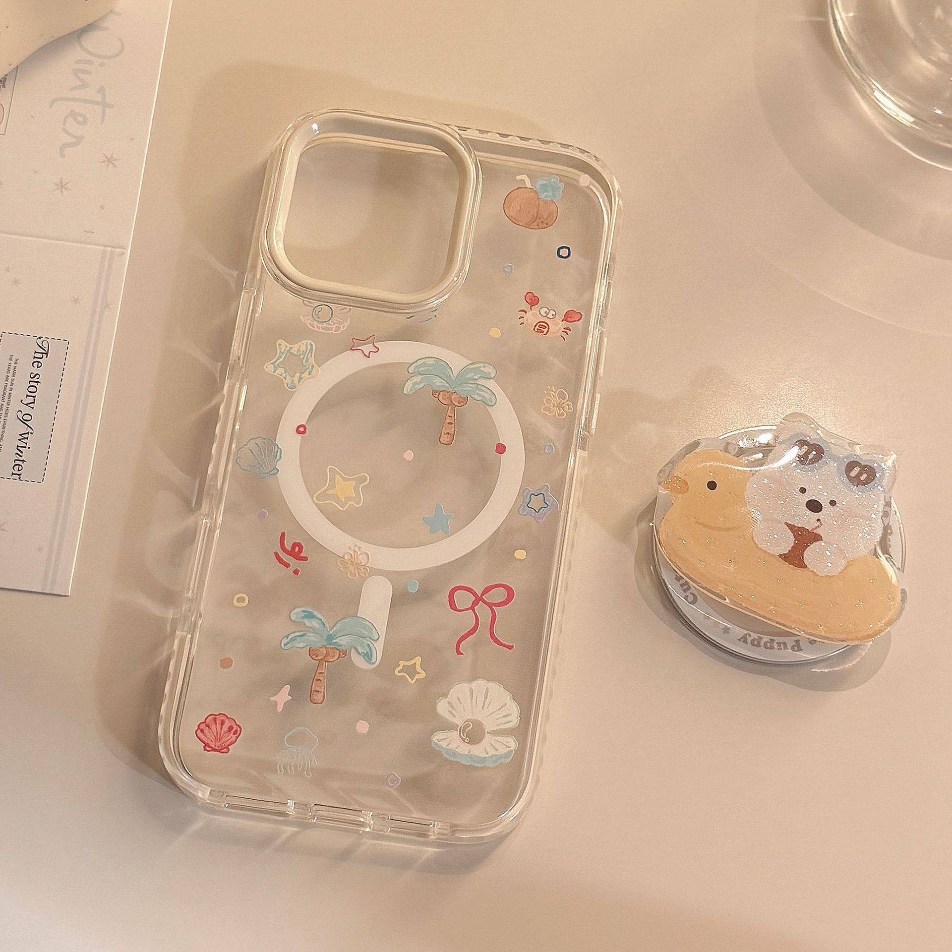 Coco marino de concha única-borde blanco-cangrejo magnético TX,Soporte magnético-borde blanco-cangrejo junto al mar coco TX