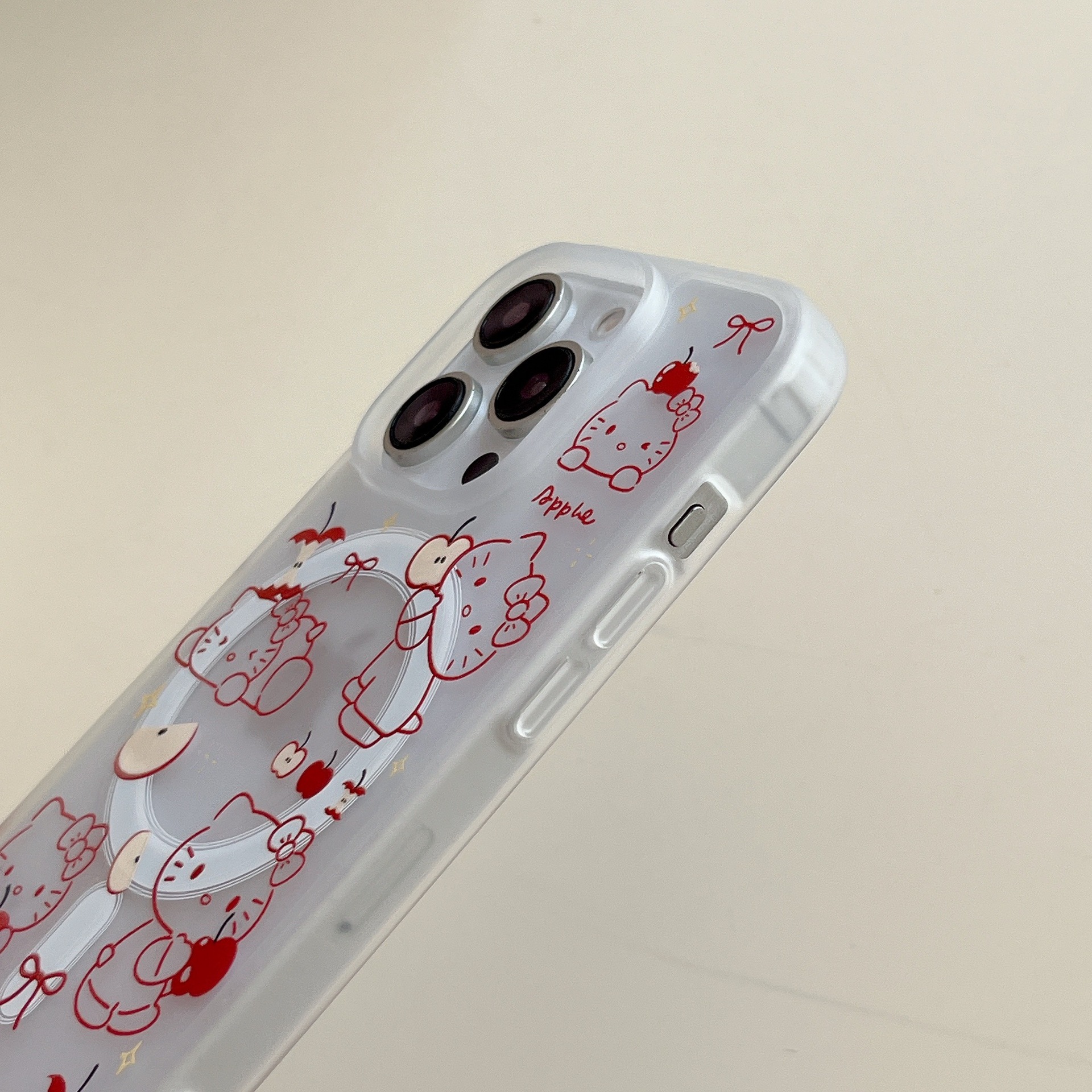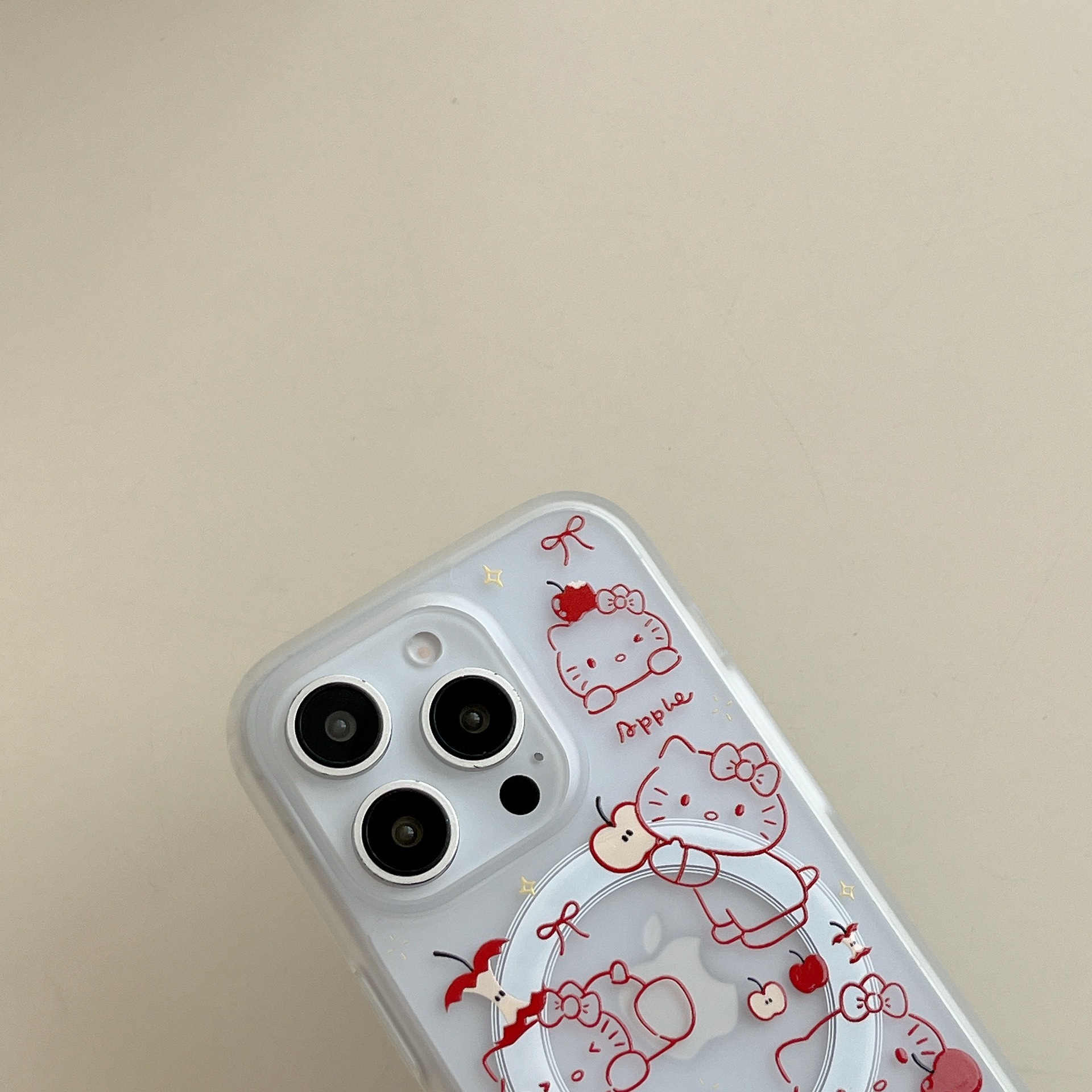 Línea de dibujos animados gato de manzana para iPhone16 funda para teléfono móvil 15PProMax atracción magnética 14/13KT16PM