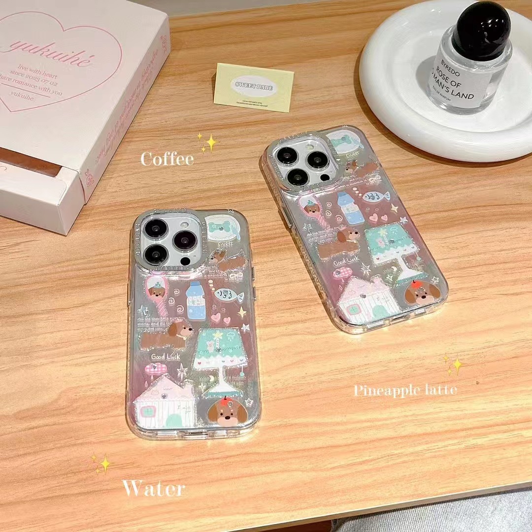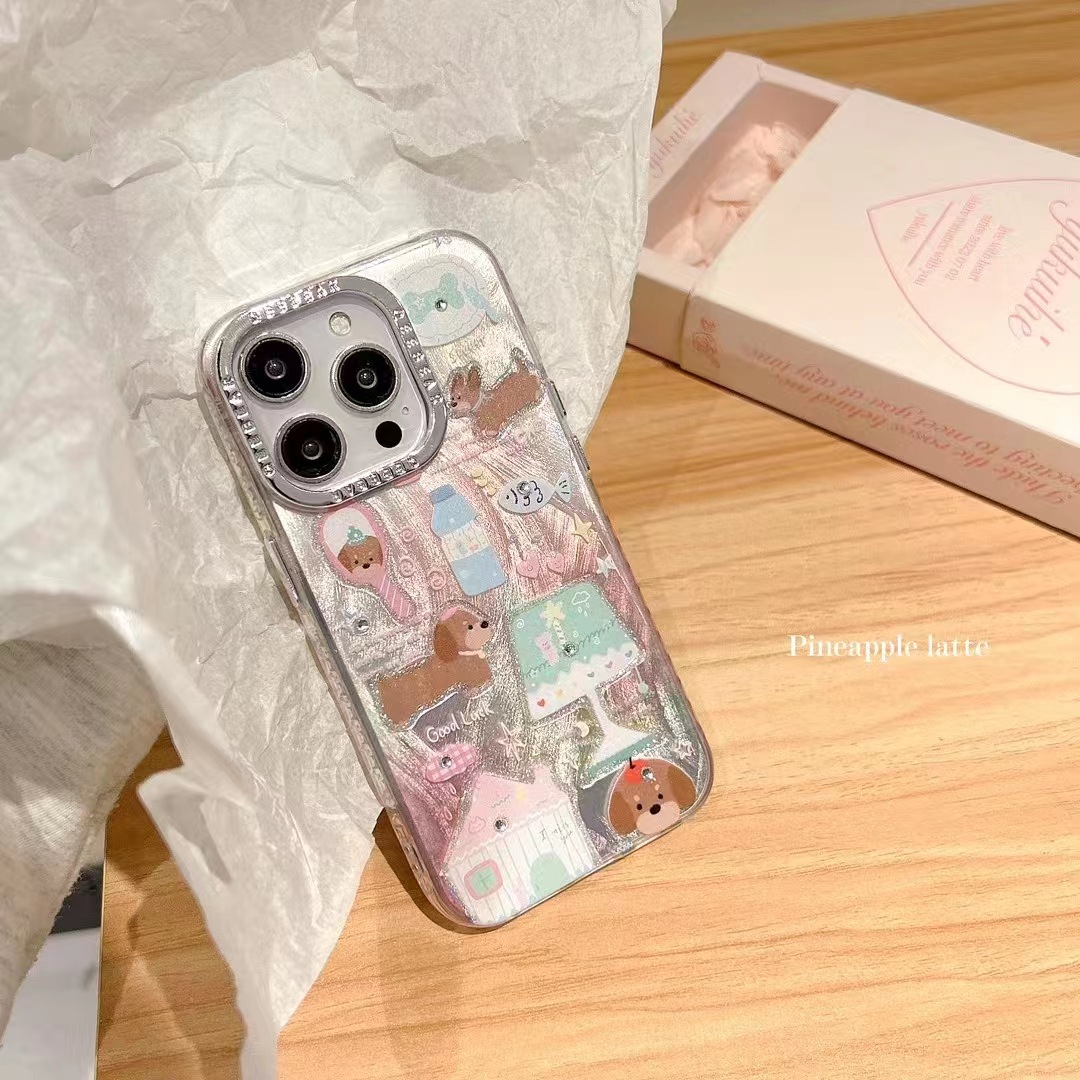 Casa Perro de manzana IPhone15promax Diamante de puntos Apple 15pro funda para teléfono móvil IP13/14 hilo de plumas