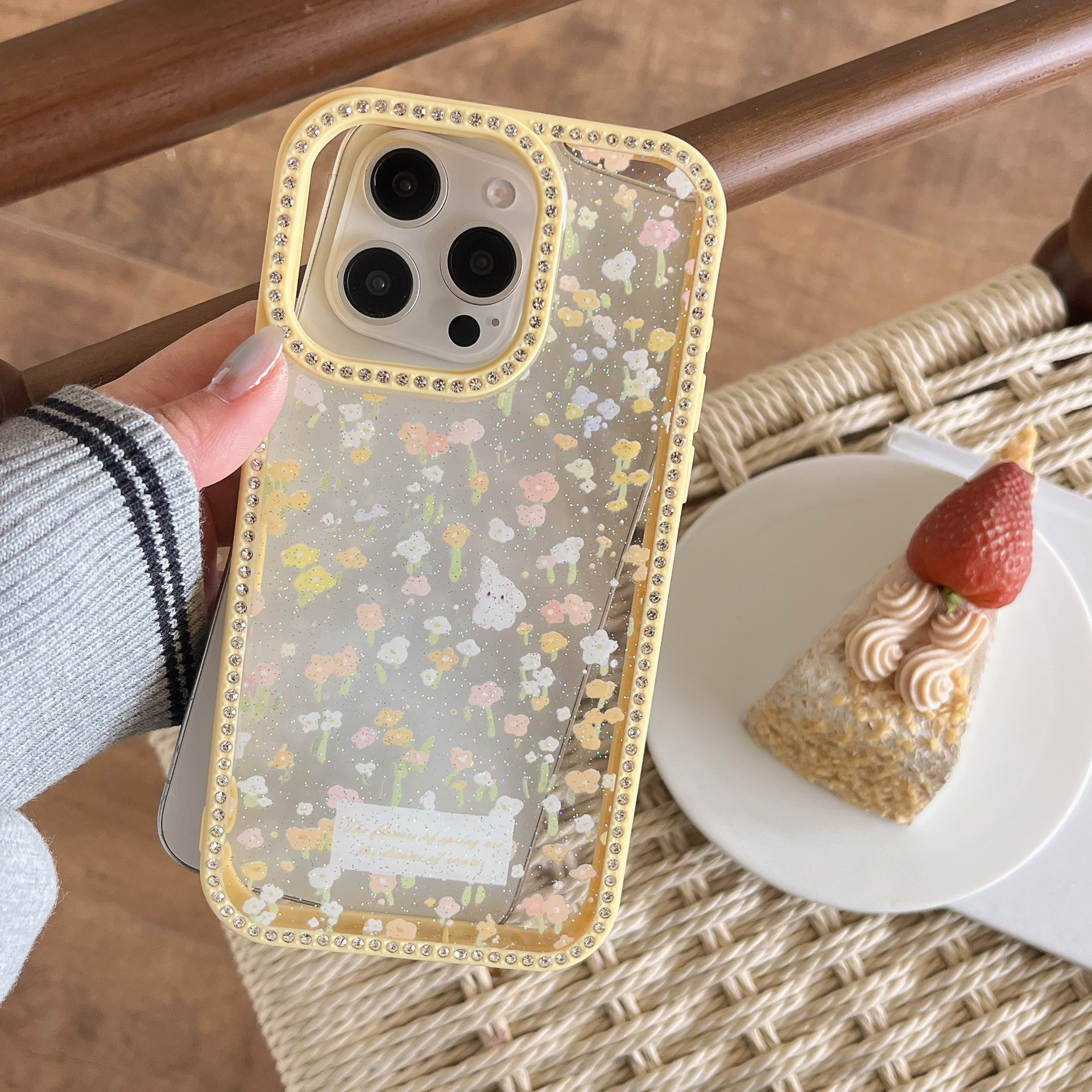 Borde de diamante brillante-flores amarillas transparentes cachorro ays