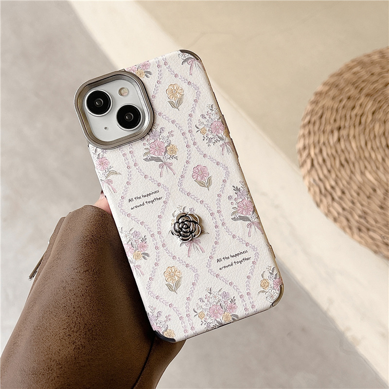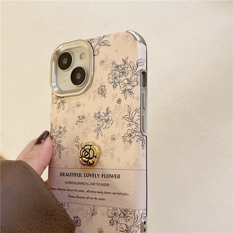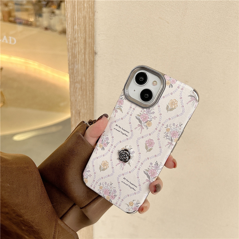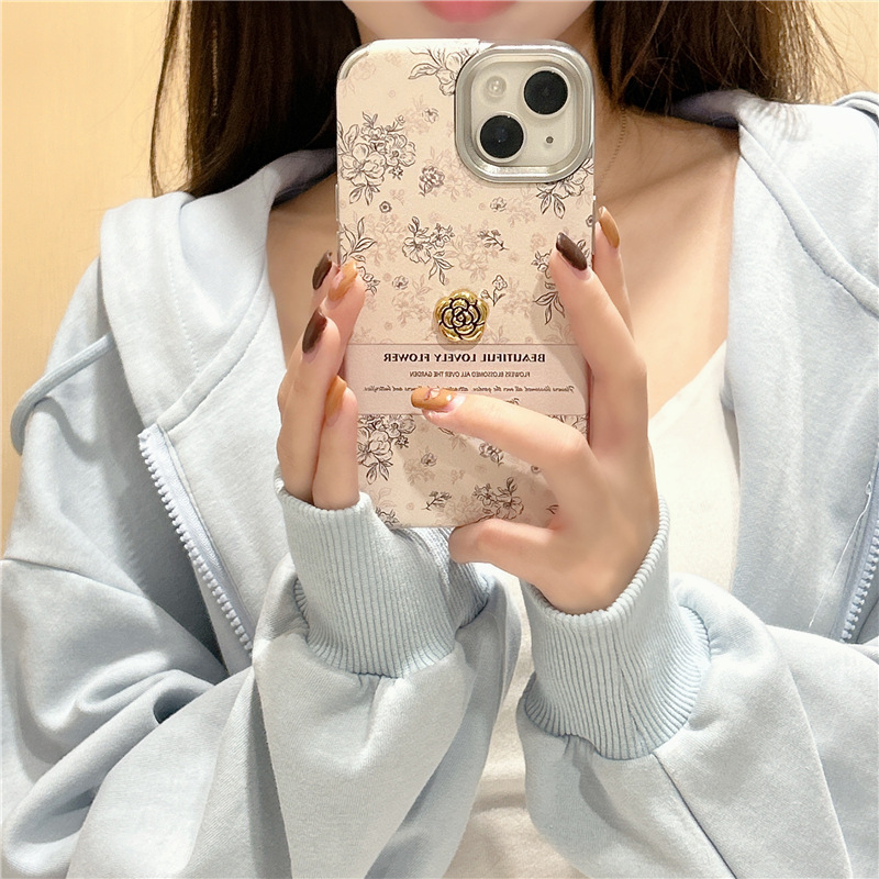 Estilo coreano ins Rosa floral inglés iPhone14 Camelia 15ProMax para Apple 13 teléfono caso 12P
