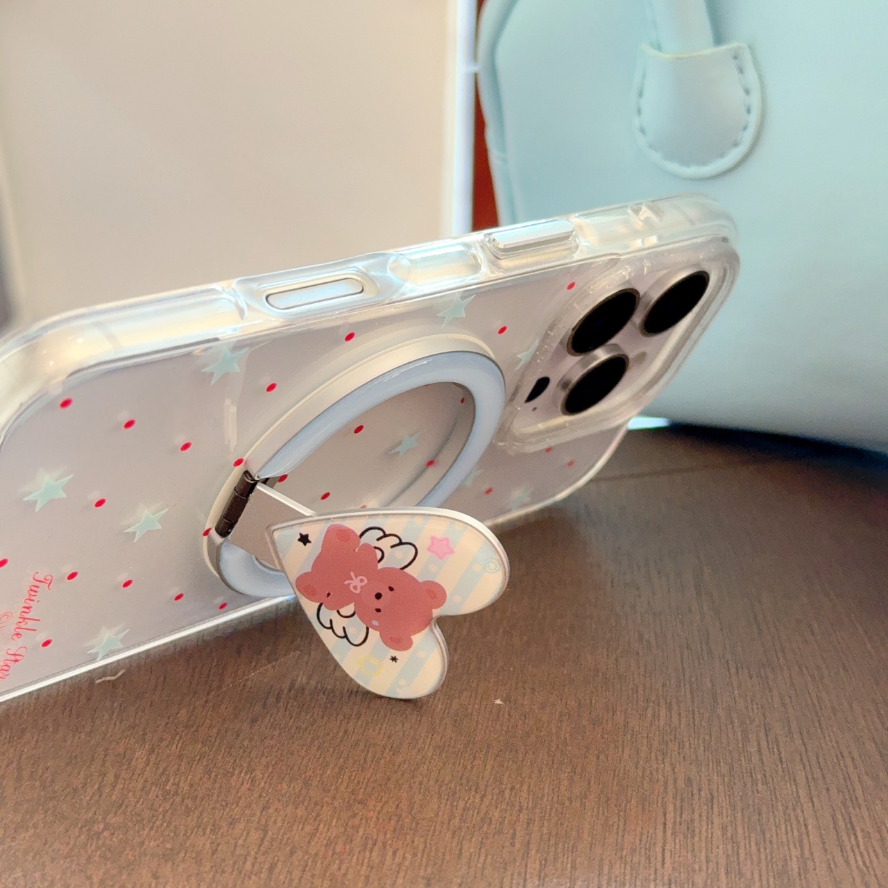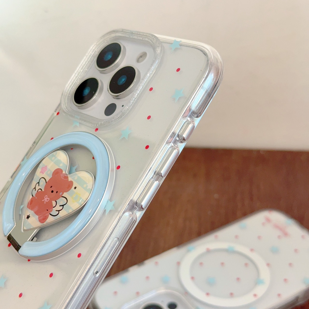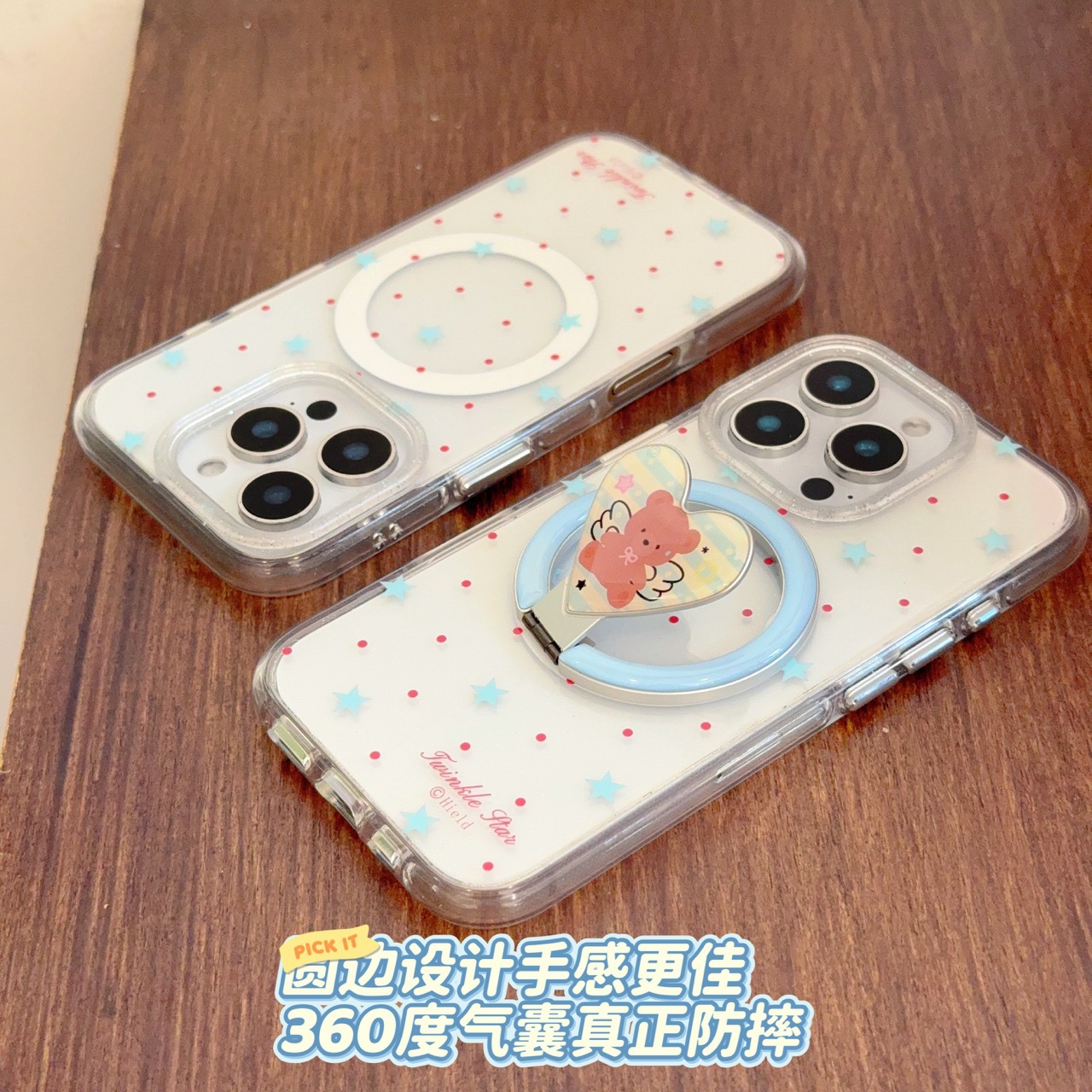 Apunción magnética monocasco-borde redondo onda roja punto estrella azul KF,Ángel oso soporte magnético borde redondo onda roja punto estrella azul KF