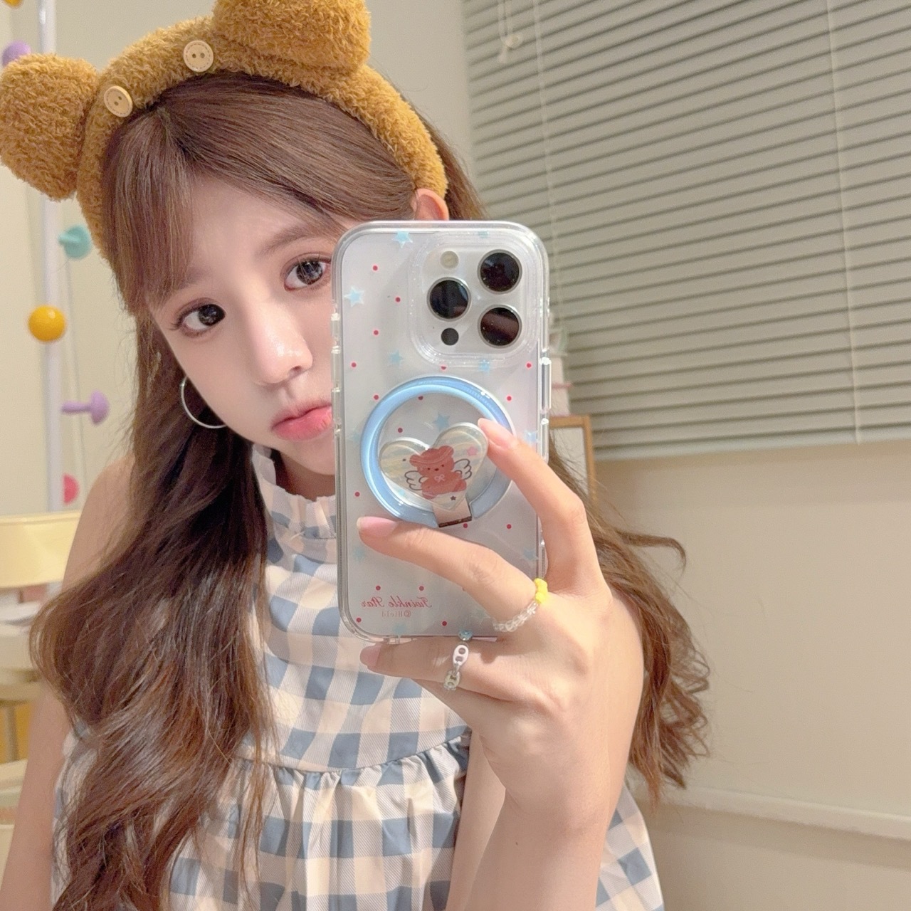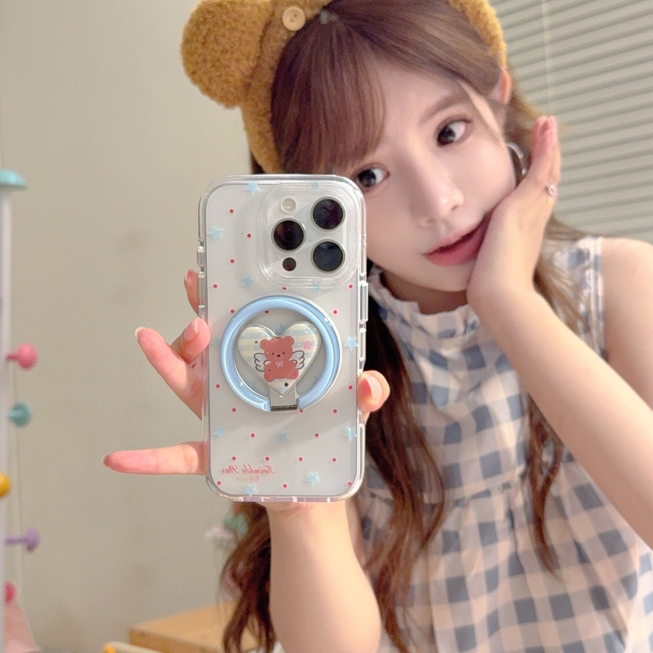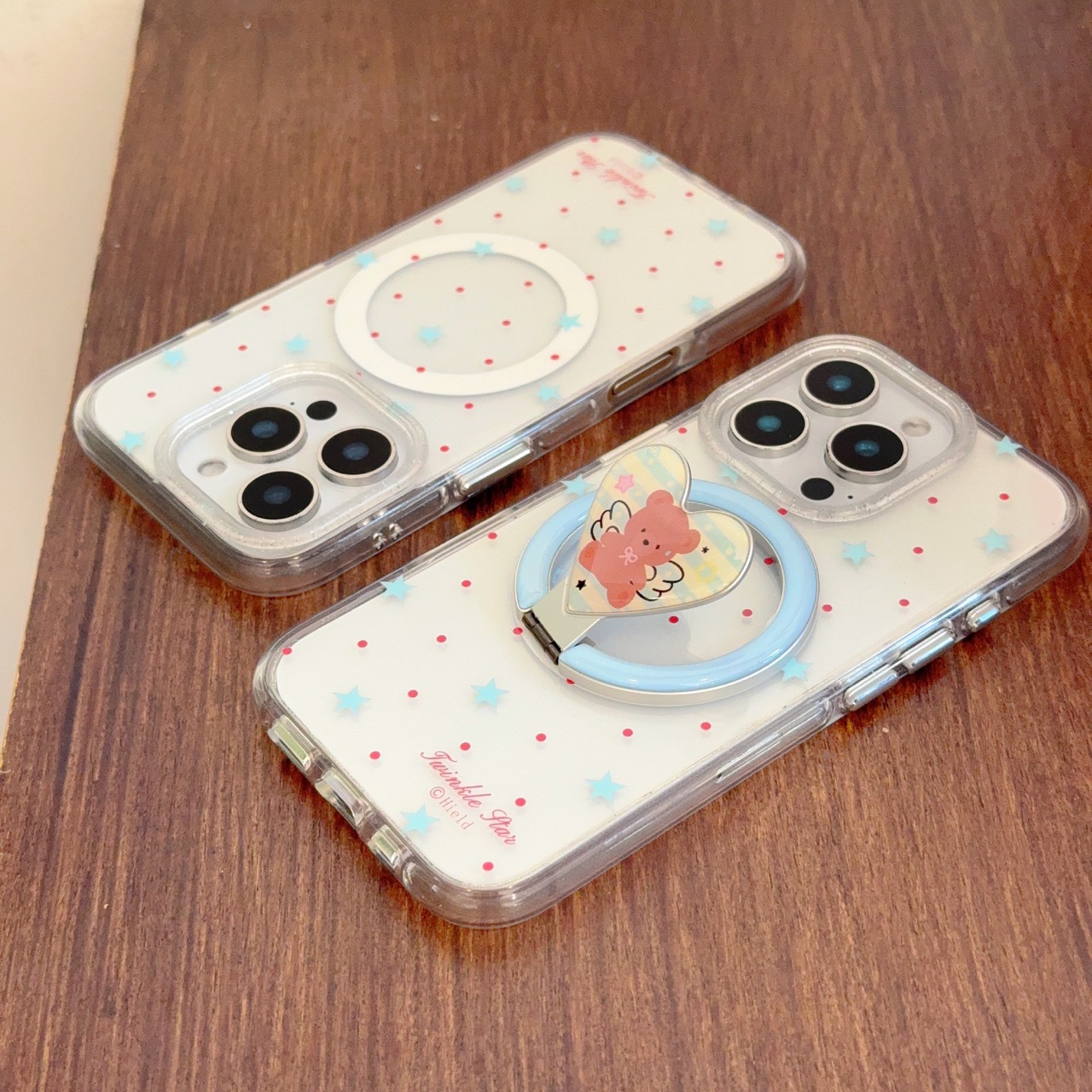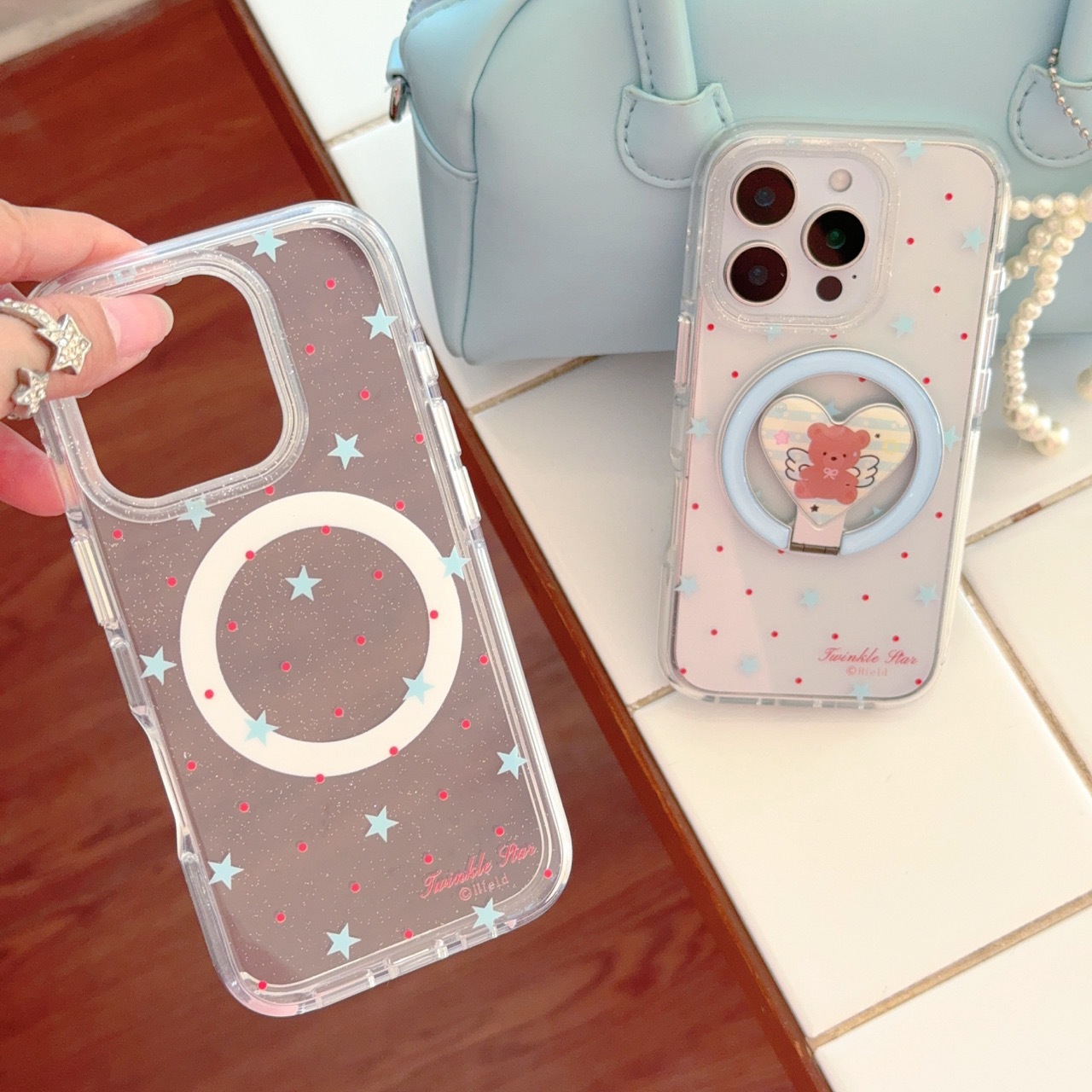 Apunción magnética monocasco-borde redondo onda roja punto estrella azul KF,Ángel oso soporte magnético borde redondo onda roja punto estrella azul KF