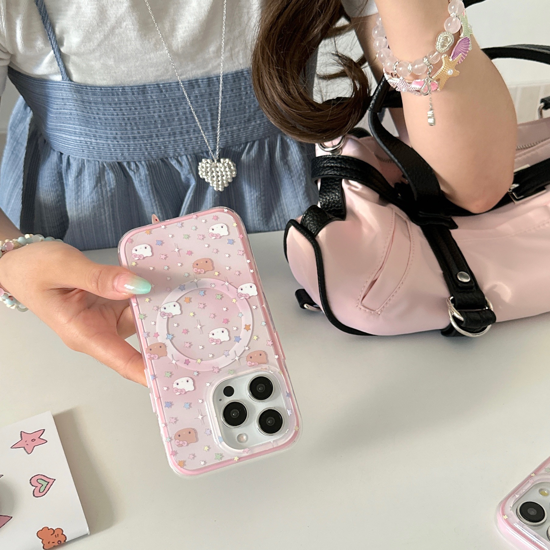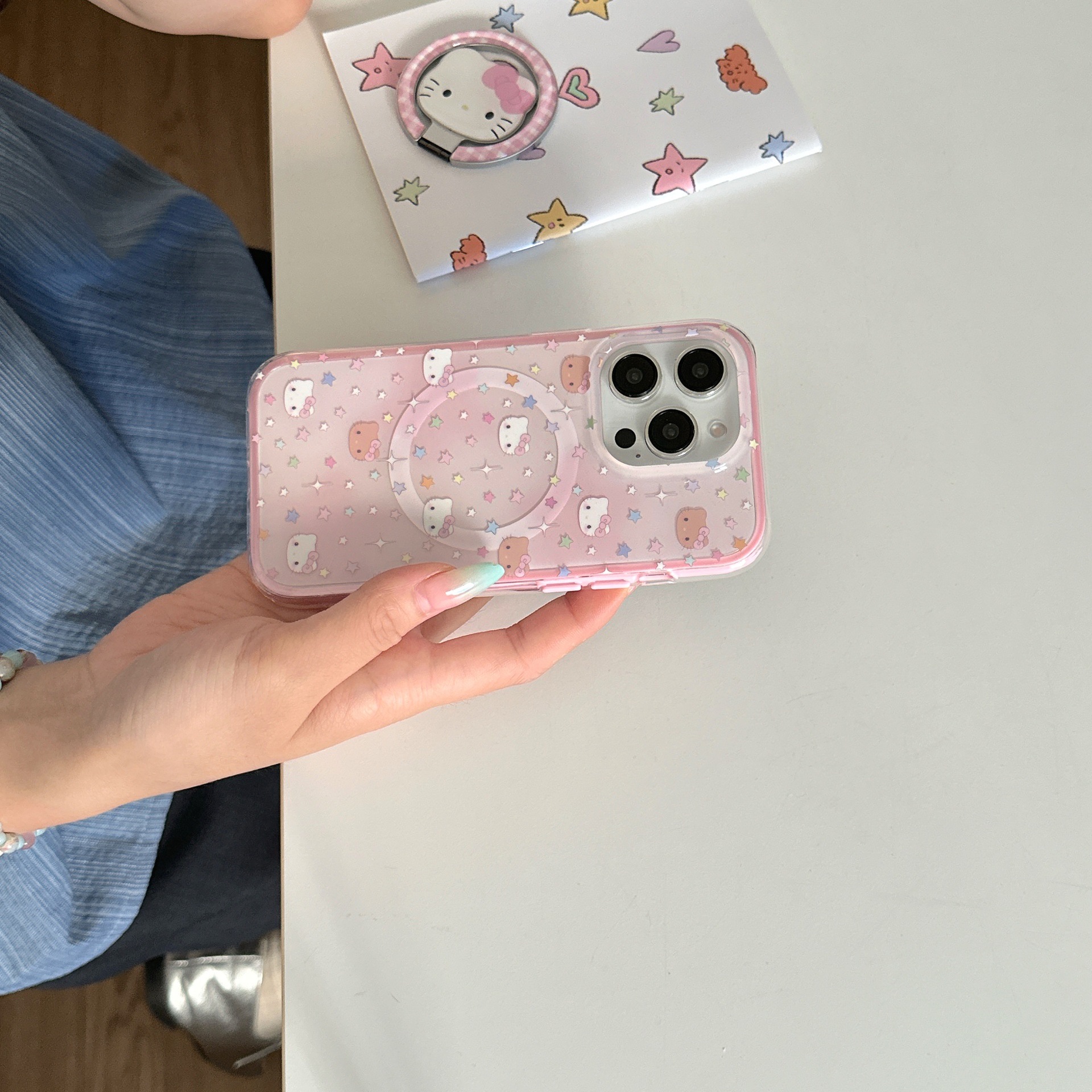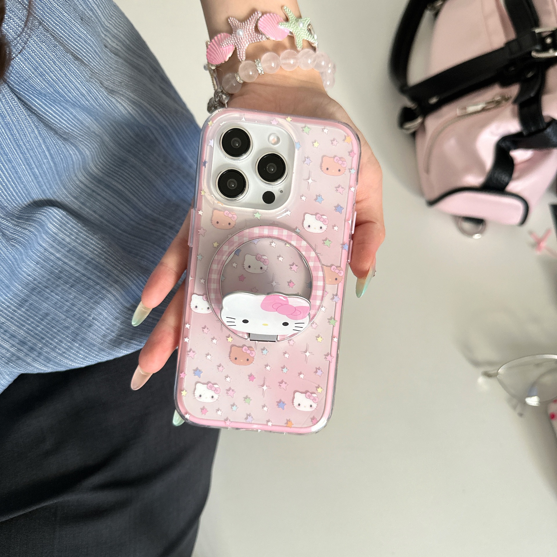 La base florece las estrellas KT cat para iPhone15/16 Apple 15ProMax funda para teléfono móvil 14 Girl Heart 16P