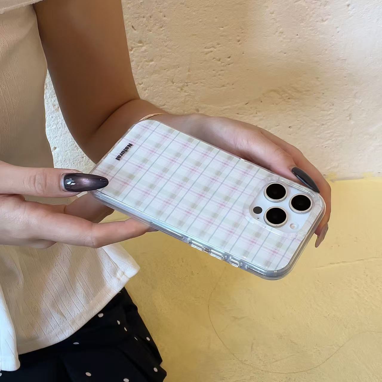 Estilo coreano a cuadros en contraste para iPhone16 funda para teléfono móvil 15ProMax simple 14/13 pareja 16ProMax
