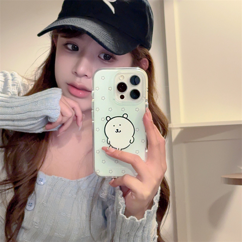 Pequeño oso de estrella verde menta fresca para iPhone16ProMax Apple 15Pro nueva pareja 14/13