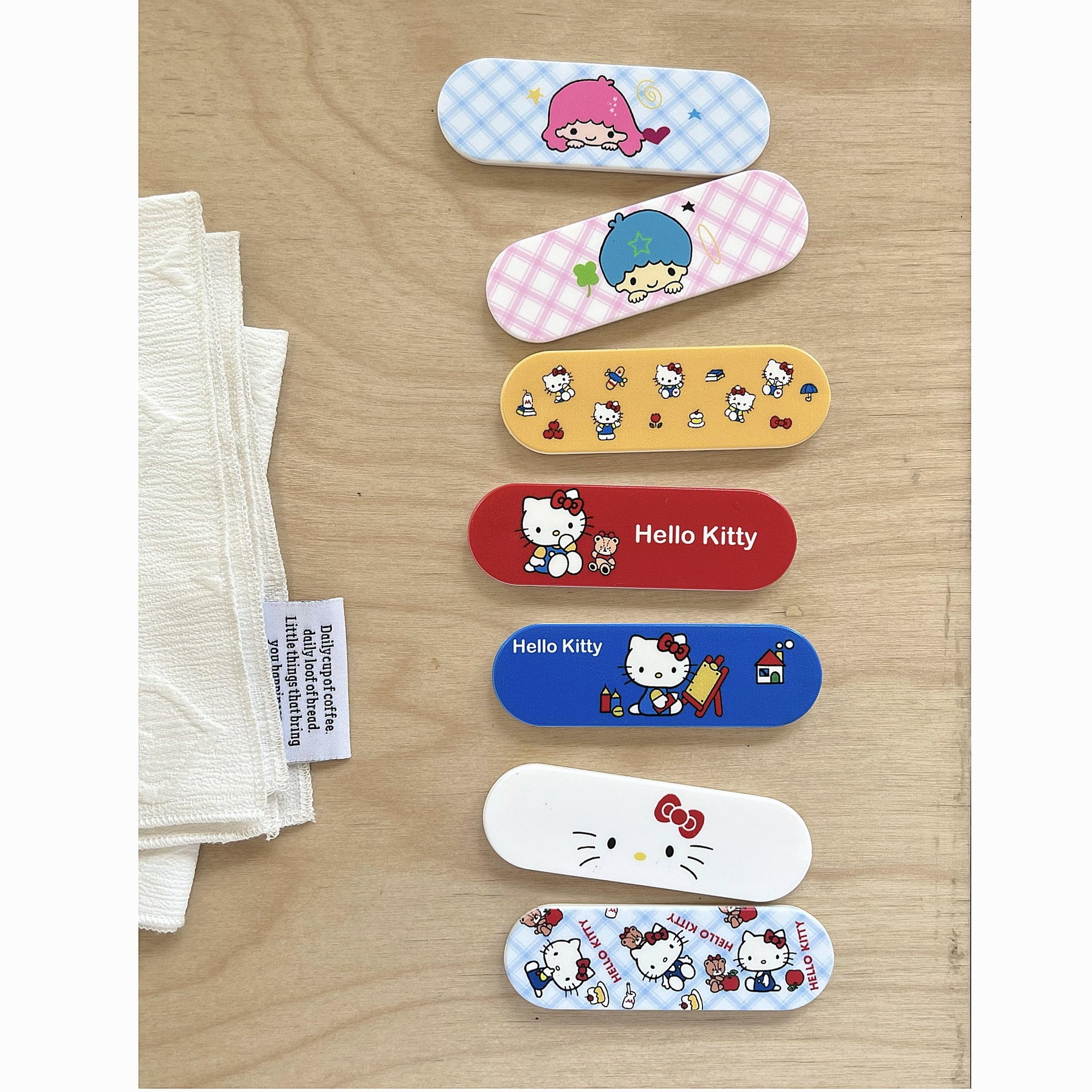 | Colores | Cuna roja KT-blanco negro lunares one,Cuna chica a cuadros azules-blanco negro lunares uno,Tiritas de chico a cuadros rosados: punto de onda negro blanco uno,Cuna KT amarilla-blanco negro lunares one,Cuna blanca KT-blanco negro lunares one,Cuna KT azul-blanco negro lunares one |